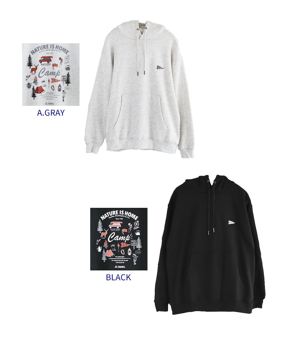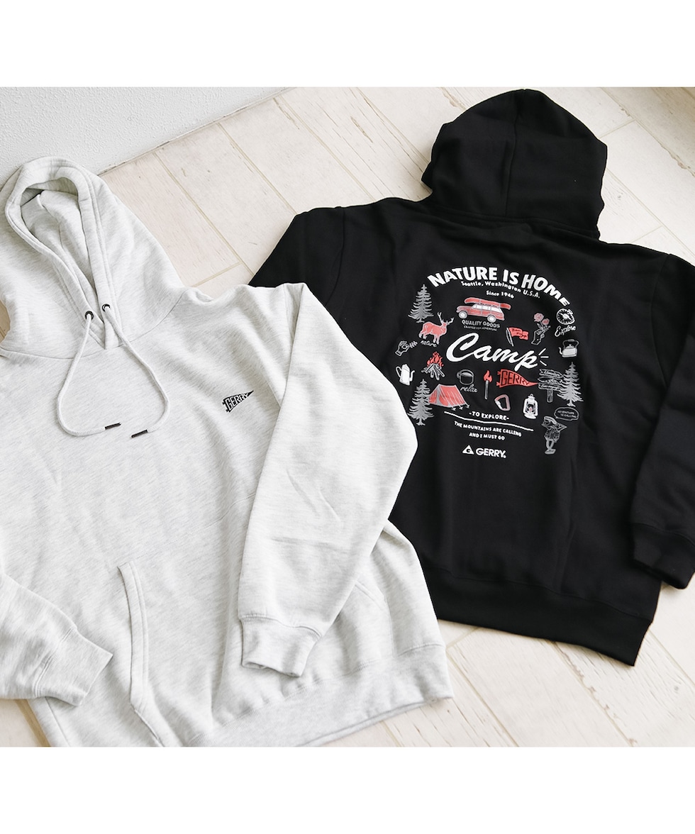 gerry フーディー 男女兼用 長袖 ロゴ 裏起毛 刺繍 大人 プリント フーデットパーカー スウェット カジュアル 黒 ブラック グレー ジェリー