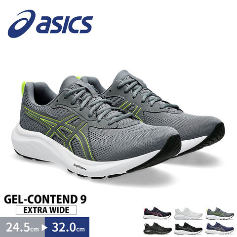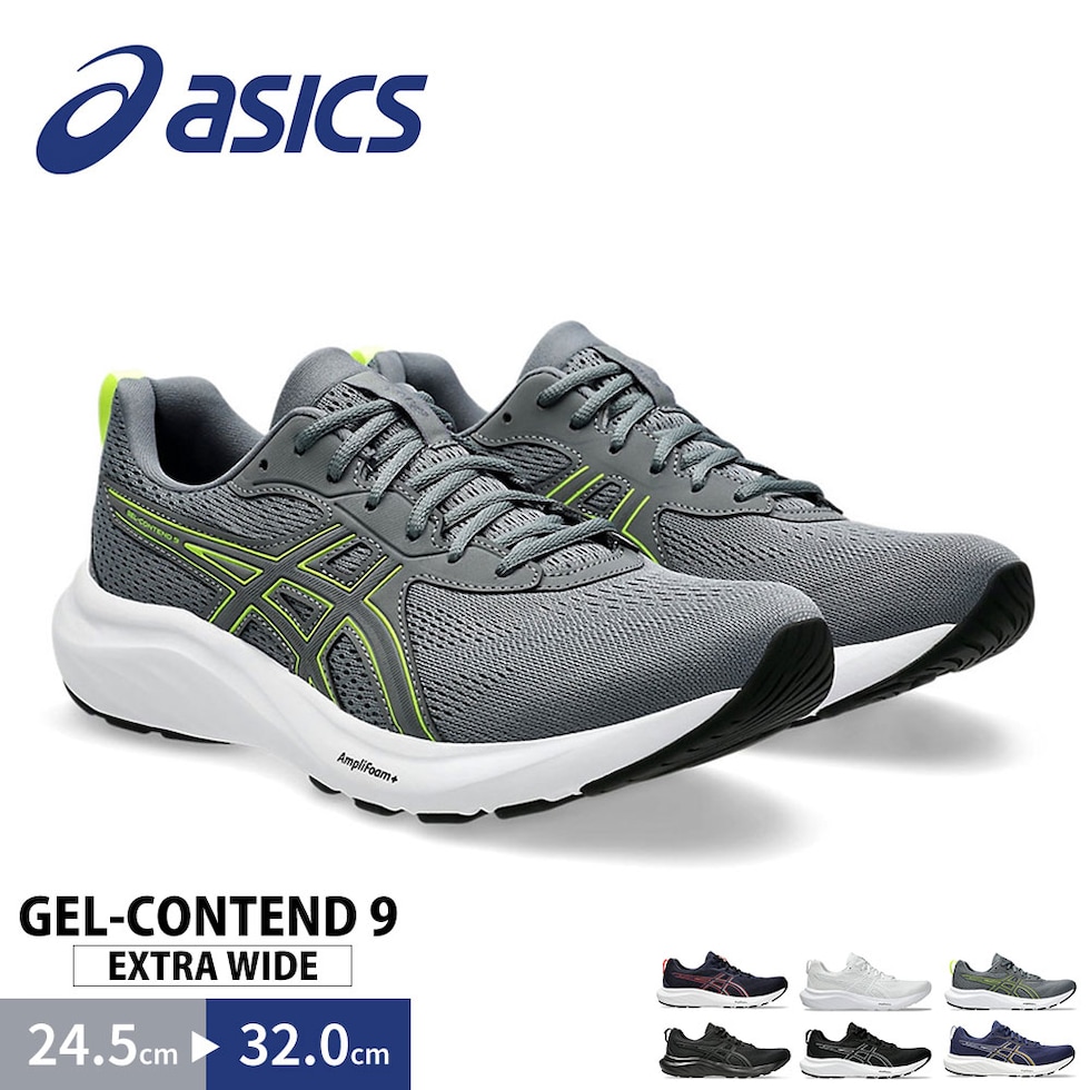 アシックス ランニングシューズ メンズ ゲルコンテド9 1011B882 幅広 4E 陸上 ワイド メッシュアッパー 運動靴 紐 ブラック asics