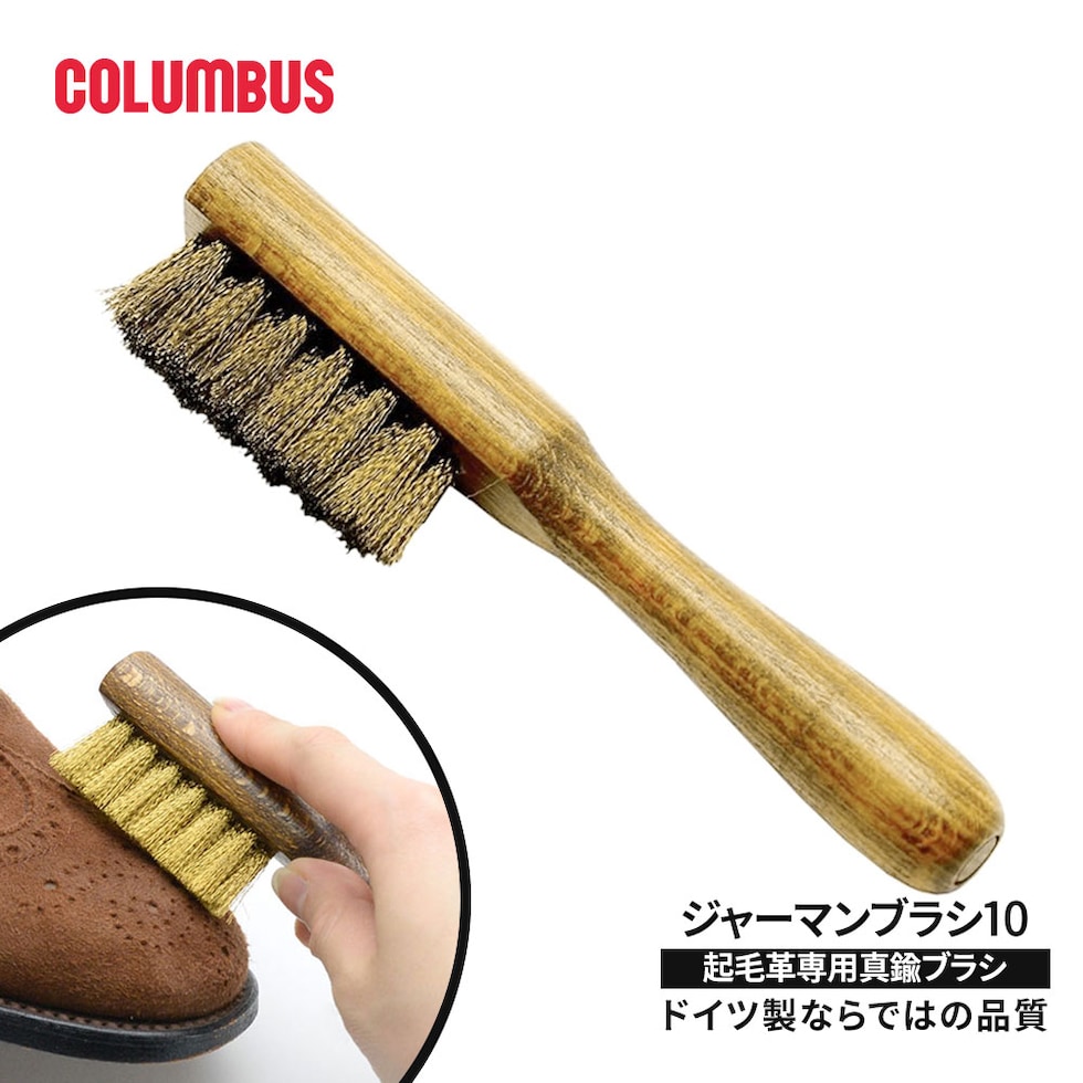 コロンブス ジャーマンブラシ 真鍮 スエード 起毛革 革靴 手入れ 汚れ落とし ホコリ 毛足整え 革ケア 木製柄 高級感 ドイツ製 COLUMBUS