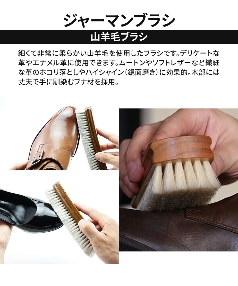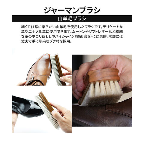 細くて非常に柔らかい山羊毛を使用したブラシです。デリケートな革やエナメル革に使用できます。