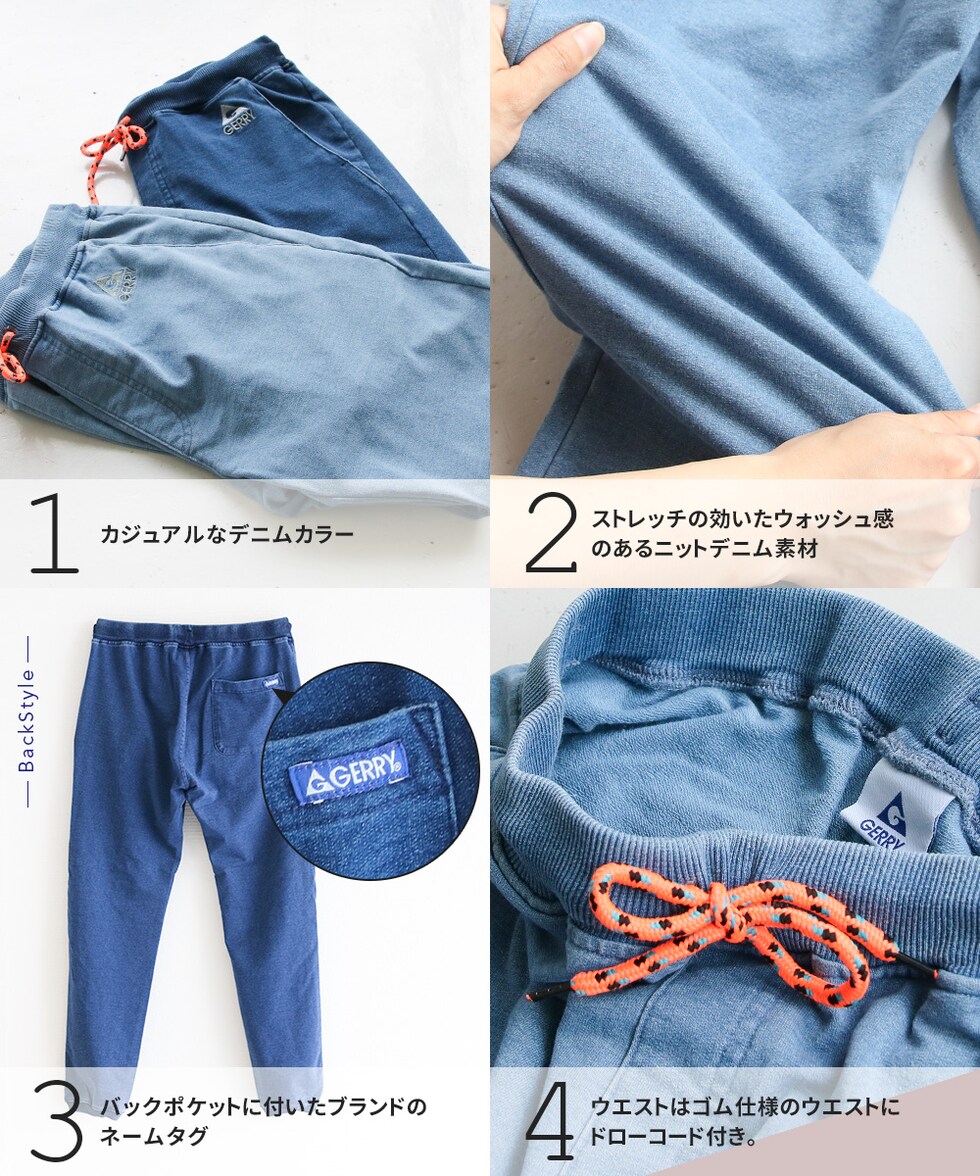 gerry イージーパンツ ジョガー テーパード デニム ロング スウェット ストレッチ スポーツ 大きいサイズ ジェリー ボトムス 夏 078640