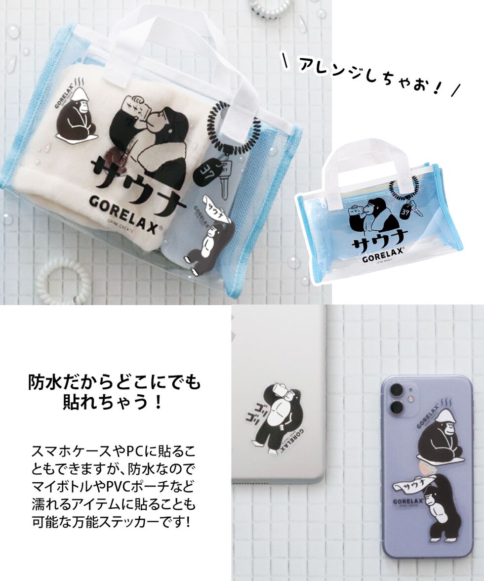 ステッカー シール スマホ スーツケース 車 ノート デコレーション かわいい ゴリラ ごりら 防水 ごリラックス ととのい防水ステッカー 熱波師 サウナ