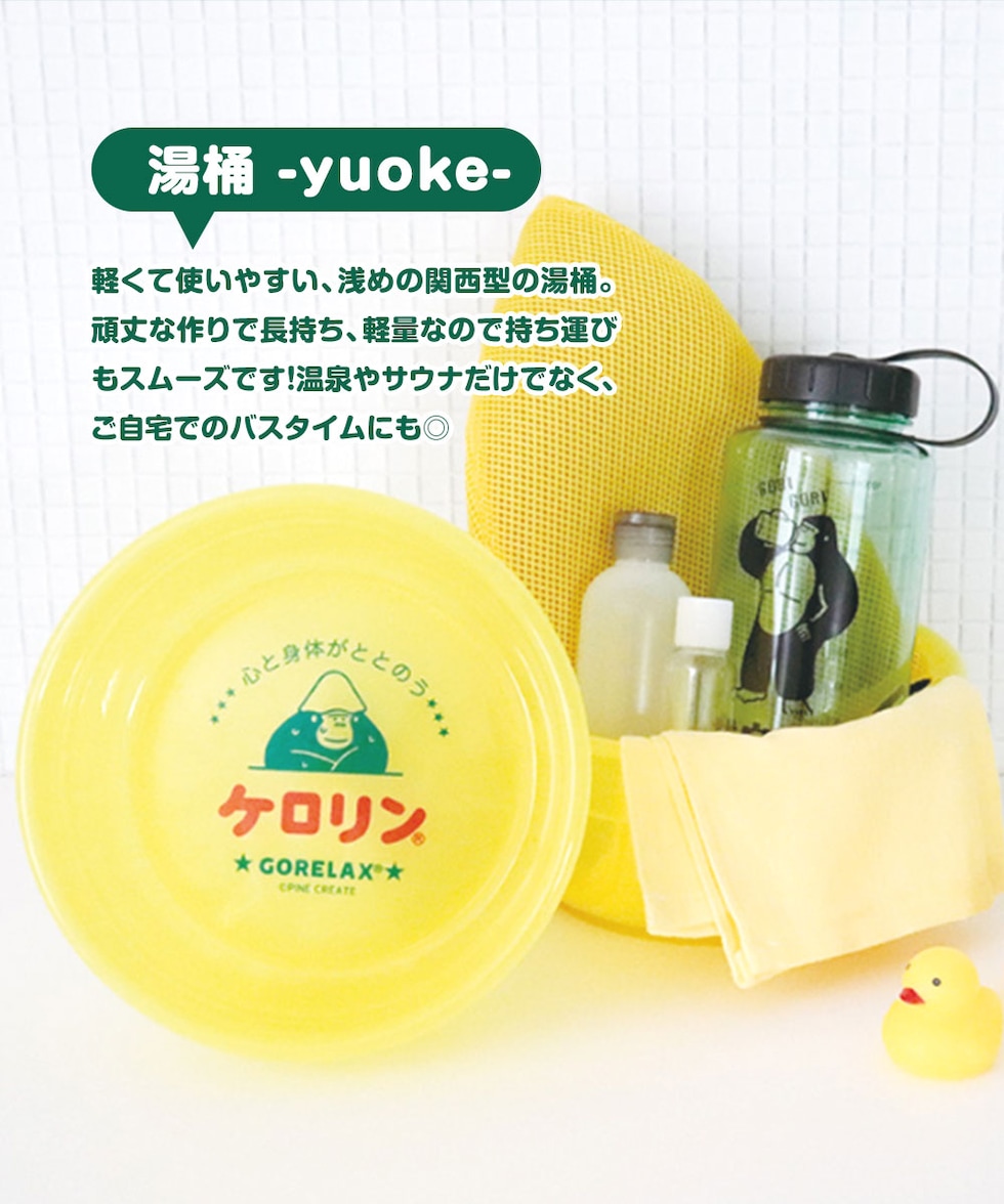 ごリラックス ケロリン 風呂桶 洗面器 丈夫 長持ち 軽量 軽い 関西版 B型 浅め かわいい お風呂 サウナ 銭湯 温泉 グッズ イエロー 湯桶