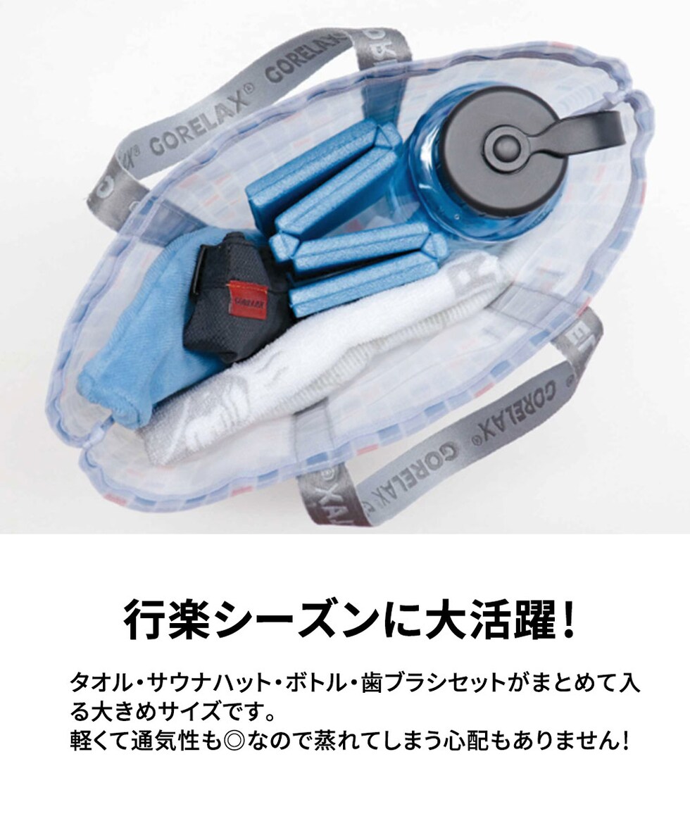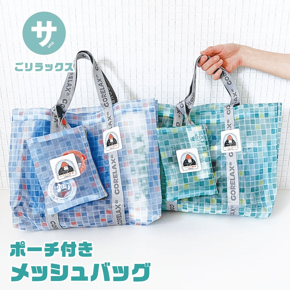 トート バッグ サウナ ととのう 銭湯 温泉 プール アウトドア ごりら ゴリラ ブルー グリーン ごリラックス ハイカラ ポーチ メッシュ