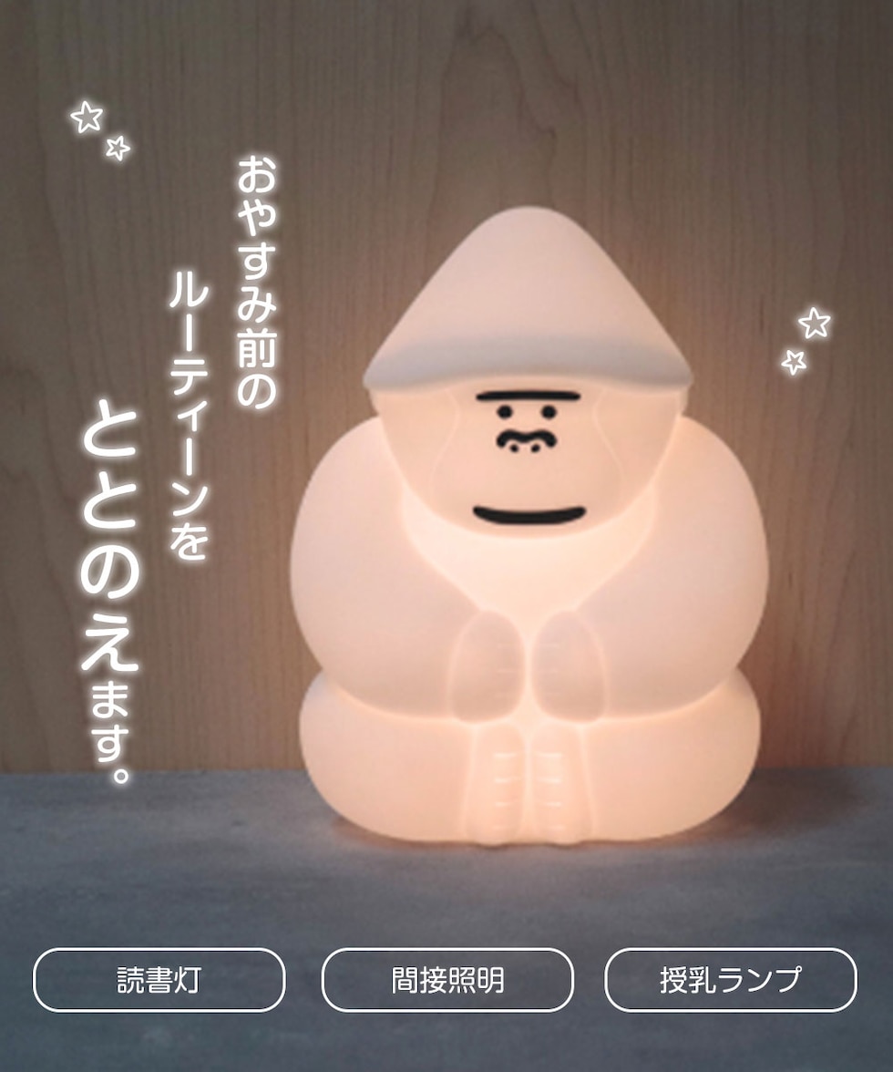 置き型 インテリア 間接照明 授乳 枕元 夜間 常夜灯 充電式 電球色 調光 ごリラックス まもるさんのもちっとルームランプ ゴリラ ごりら