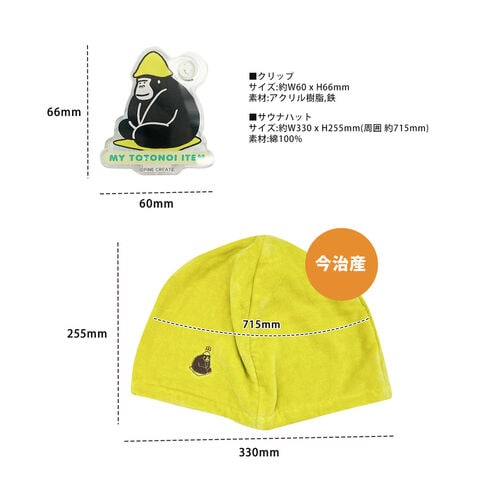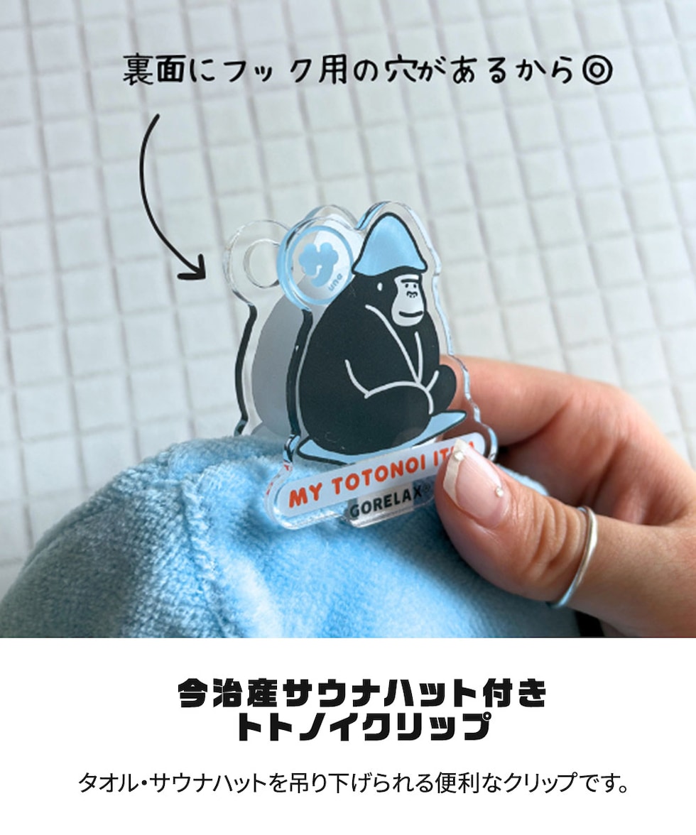 サウナ ハット グッズ ととのう クリップ 日本製 銭湯 風呂 温泉 綿100% 帽子 吸水 速乾 ブルー イエロー ゴリラ ごりら ごリラックス