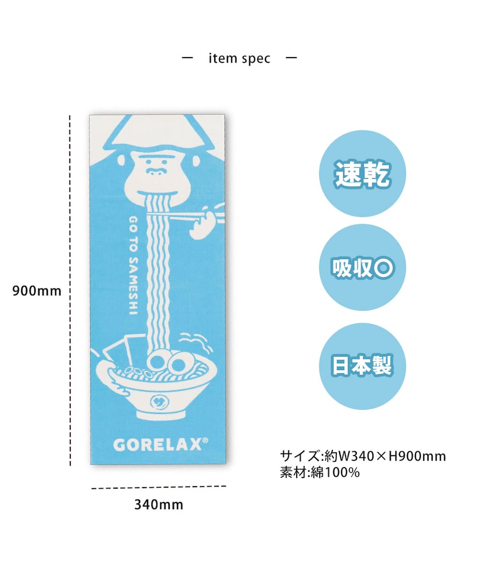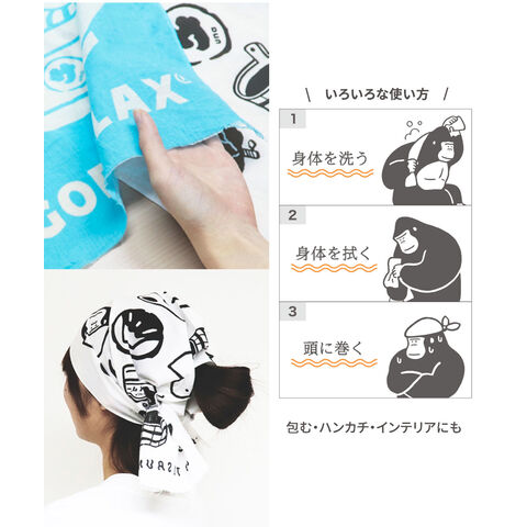 手ぬぐい てぬぐい ハンカチ はんかち 剣道 汗拭き サウナ ととのう 銭湯 日本製 綿100% ブルー ホワイト 青 白 ごりら ごリラックス