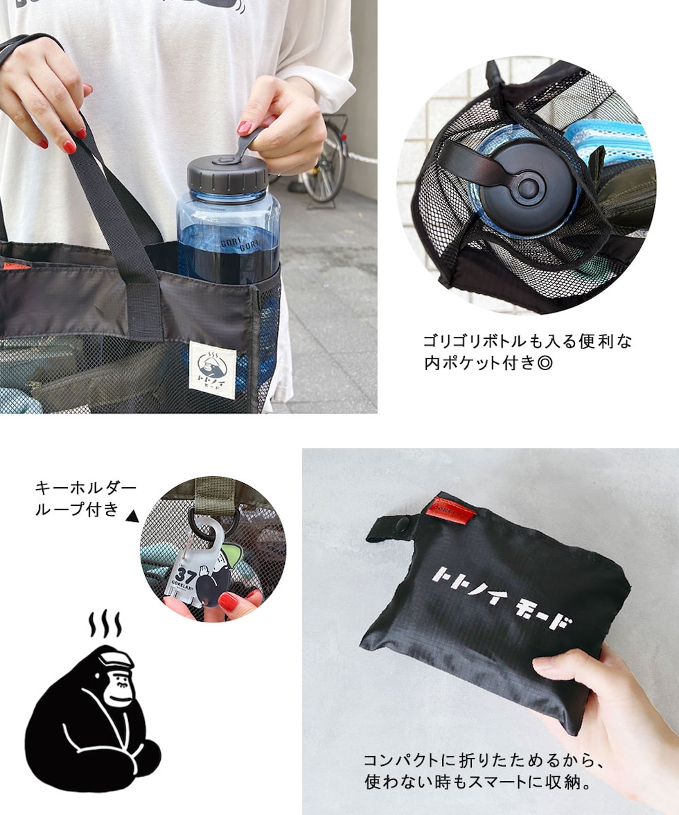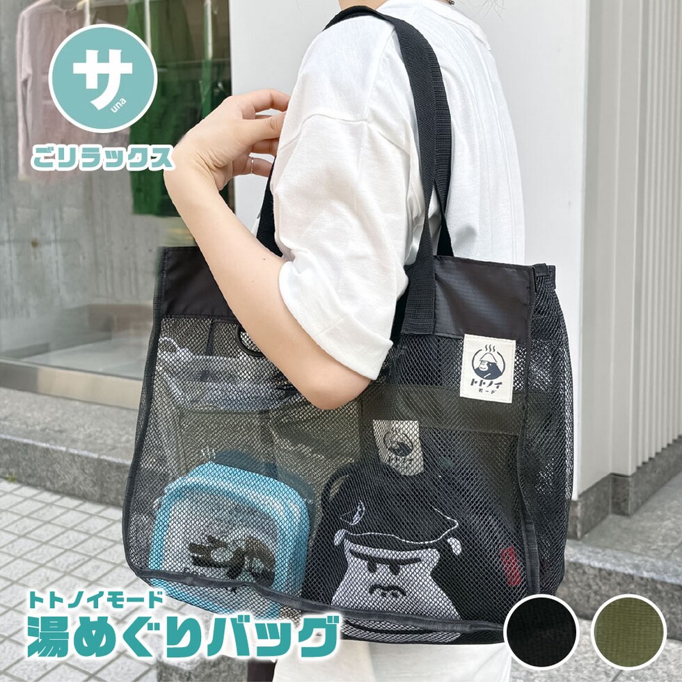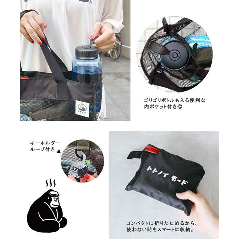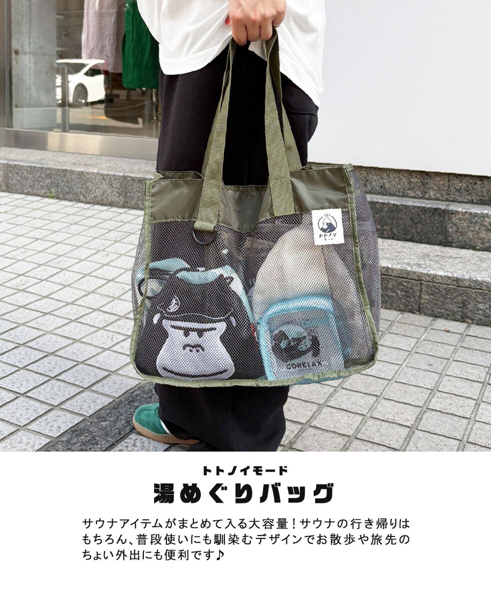 ごリラックス トート バッグ おしゃれ かわいい メッシュ 速乾性 通気性 水はけ 軽量 サウナ グッズ 温泉 銭湯 岩盤浴 鞄 トトノイモード 湯めぐり GORELAX