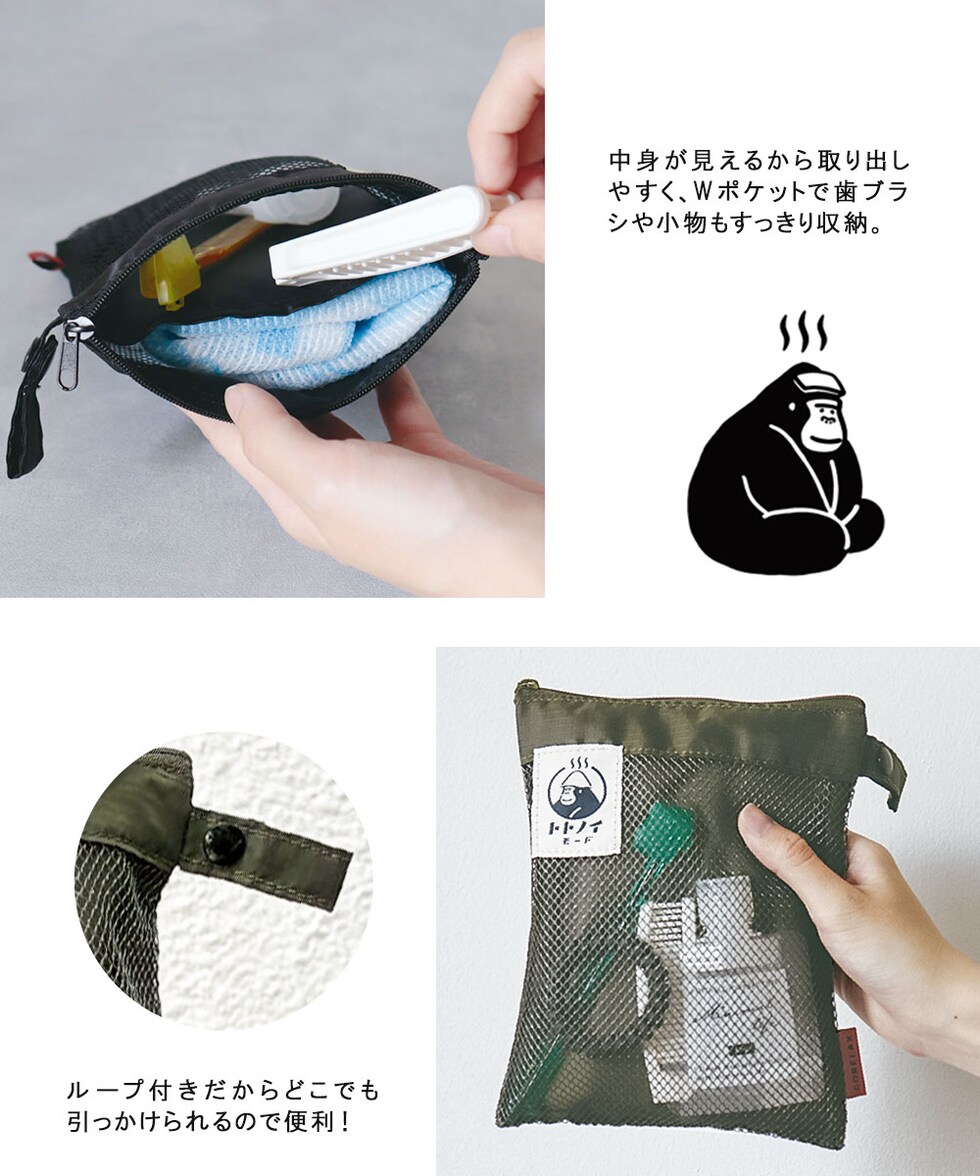 ごリラックス メッシュ ポーチ おしゃれ かわいい メッシュ 速乾性 通気性 軽量 サウナ グッズ 温泉 銭湯 岩盤浴 鞄 バッグ トトノイモード 湯めぐり GORELAX
