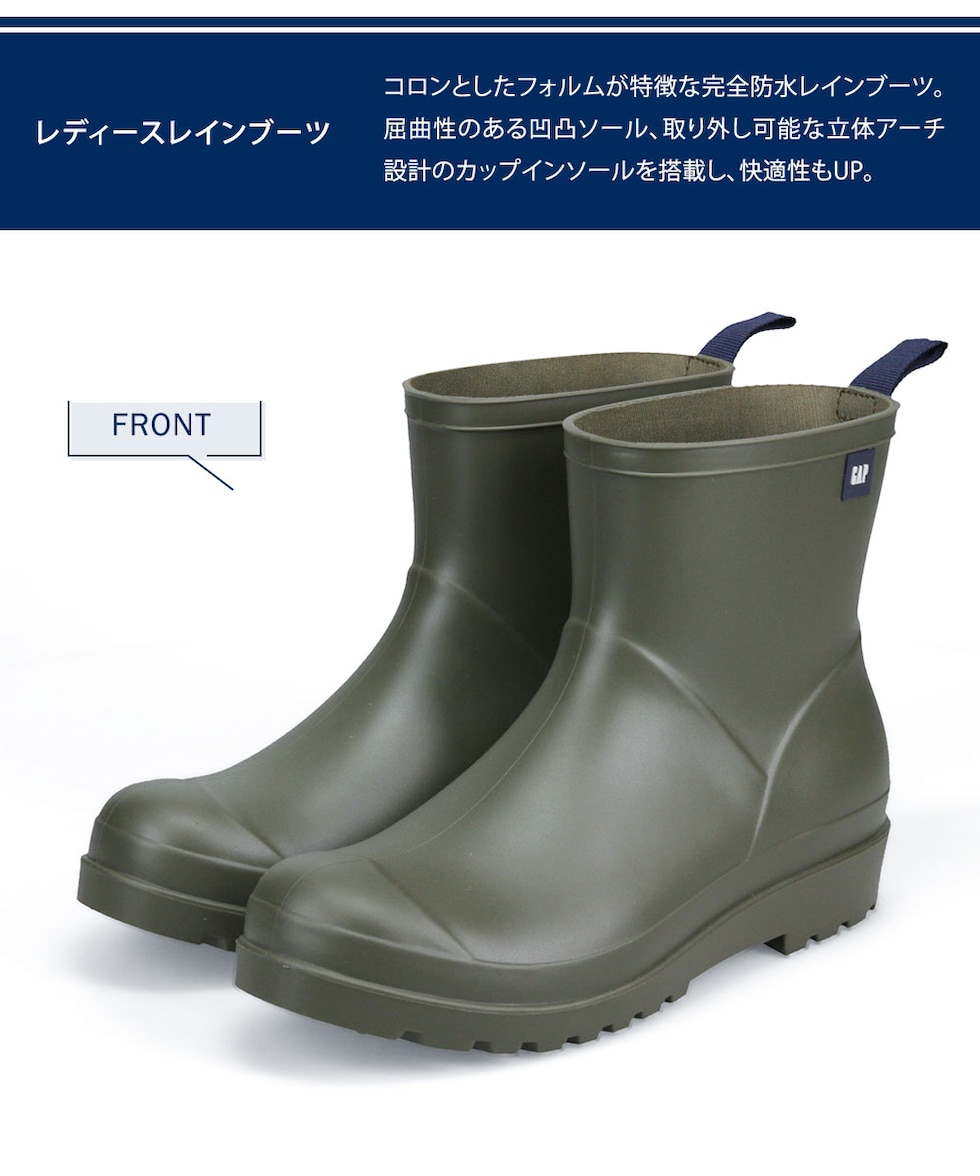 GAP レディース レインブーツ ショート 長靴 防水 雨靴 軽量 雨の日 梅雨 通勤 通学 シンプル 無地 ガーデニング ギャップ GPL22423