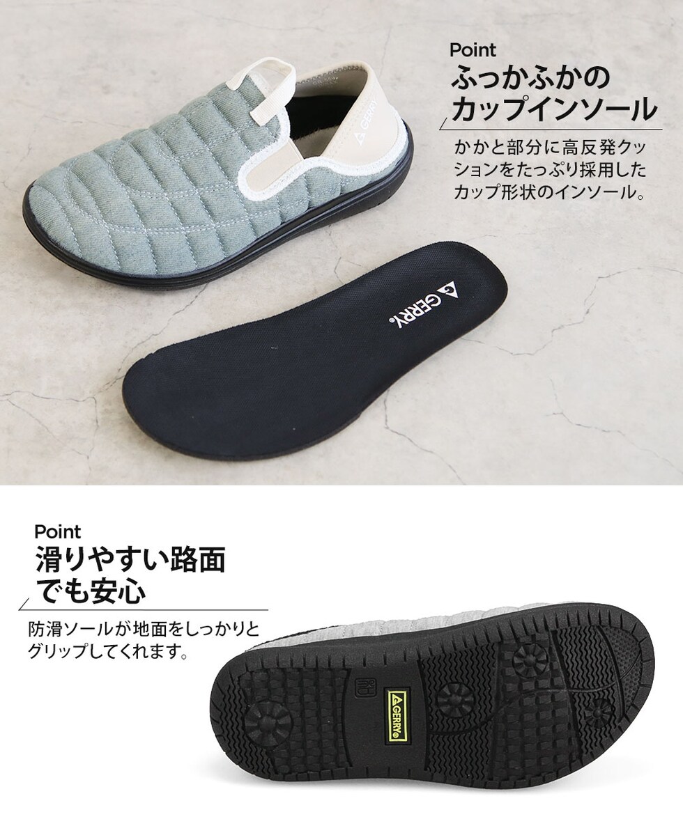ジェリー モック シューズ レディース かかとが踏める カジュアル アウトドア 靴 ブラック グレー デニム ネイビー サックス gerry 5592
