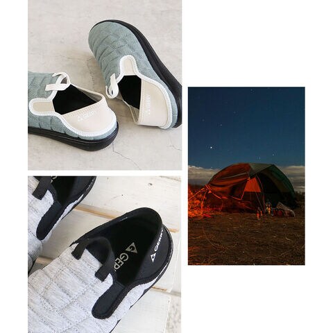 脱ぎ履きが便利なので、ちょっとした外出からテントシューズとしても活躍。