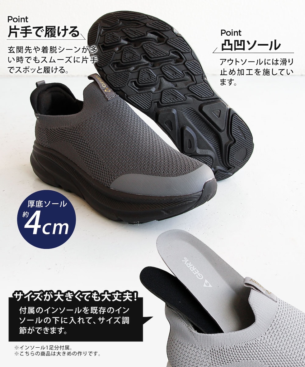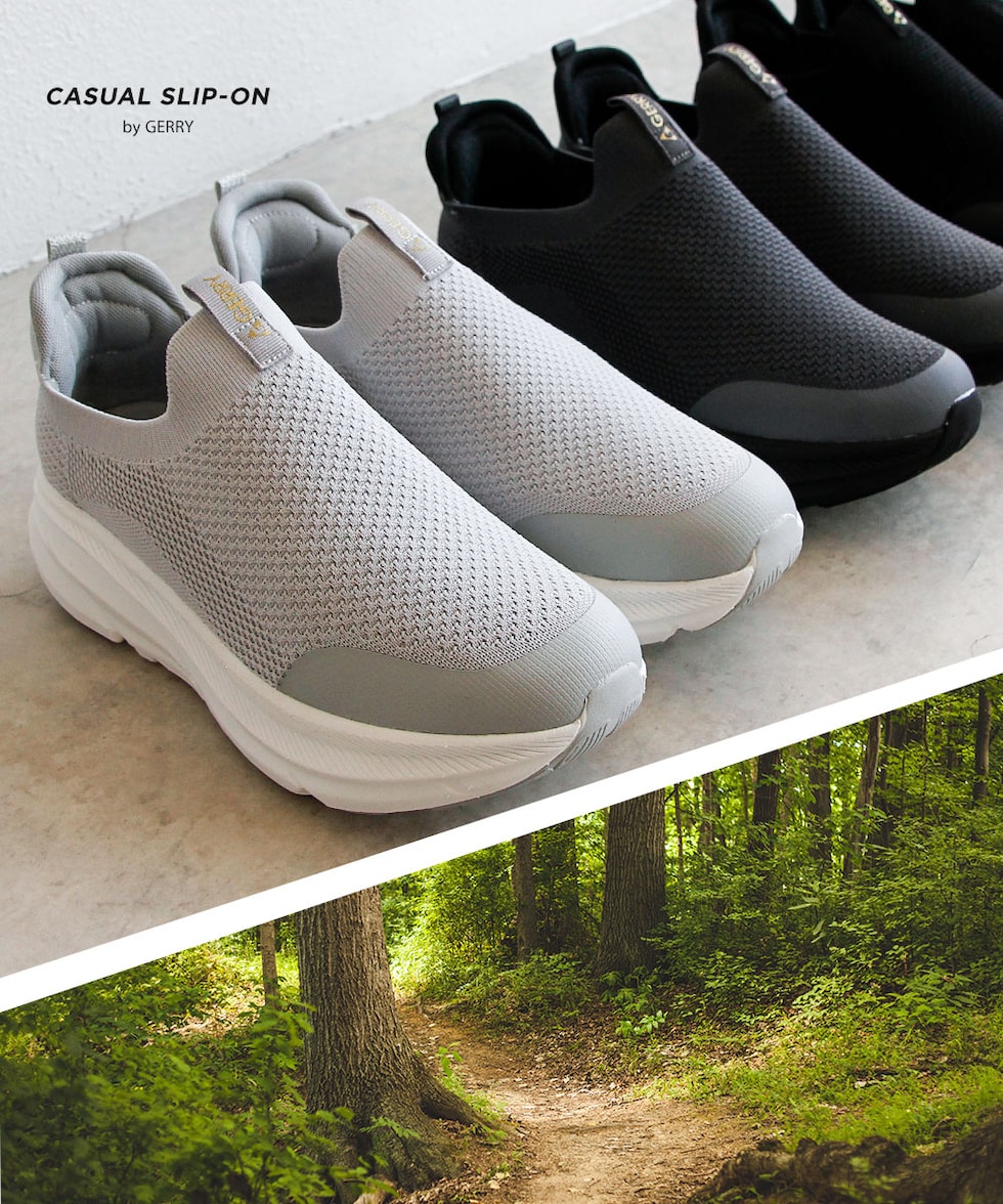 ジェリー スリッポン メンズ 厚底 スニーカー ブランド 軽量 履きやすい メッシュ カジュアルシューズ 厚底シューズ 疲れにくい ジム フィットネス スポーツ シンプル 黒 無地 通気 軽量 黒 ブラック グレー gerry 6584