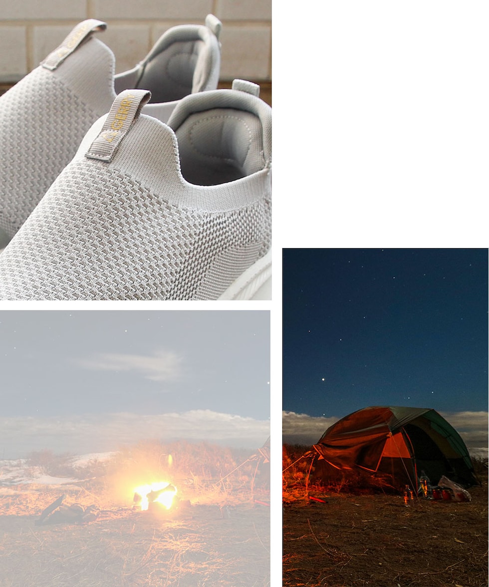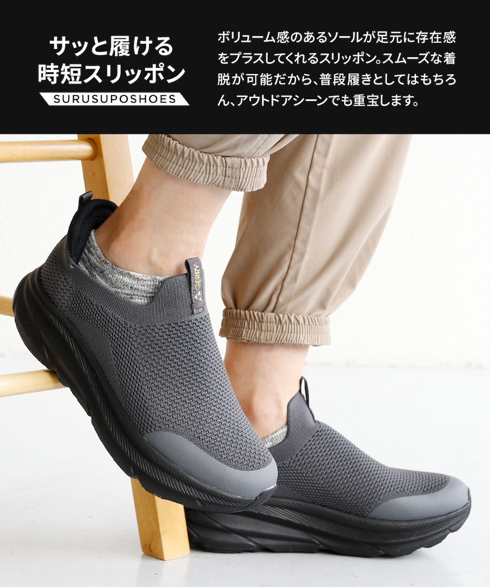 スリッポンタイプでスムーズな着脱が可能だからアウトドアシーンでも重宝します。