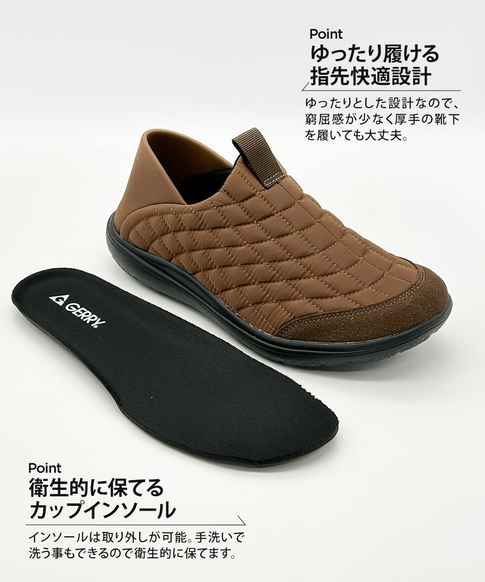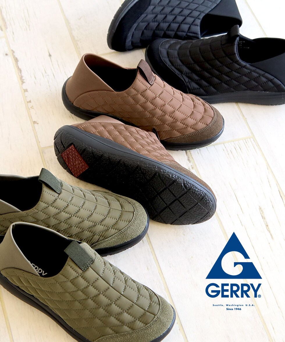 ジェリー モック シューズ メンズ サボ クロッグ キルティング キャンプ あったか 軽い 黒 ブラック カーキ ブラウン gerry 6588