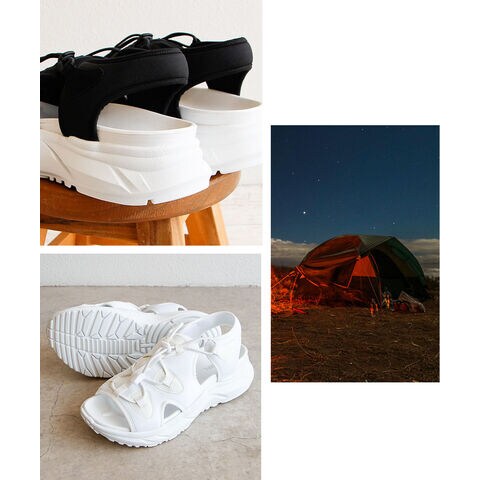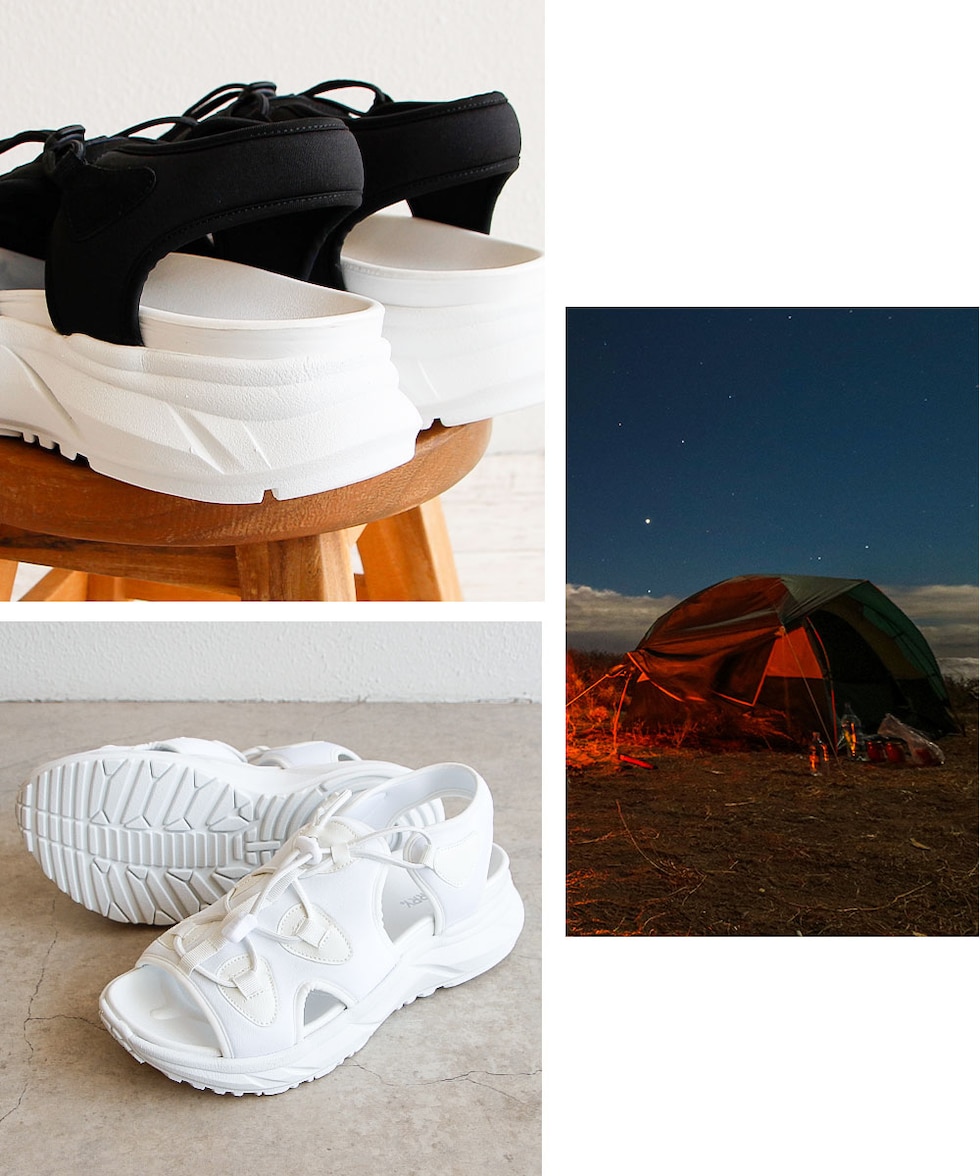 キャンプなどのアウトドアシーン、オフィス履きにもおすすめです。