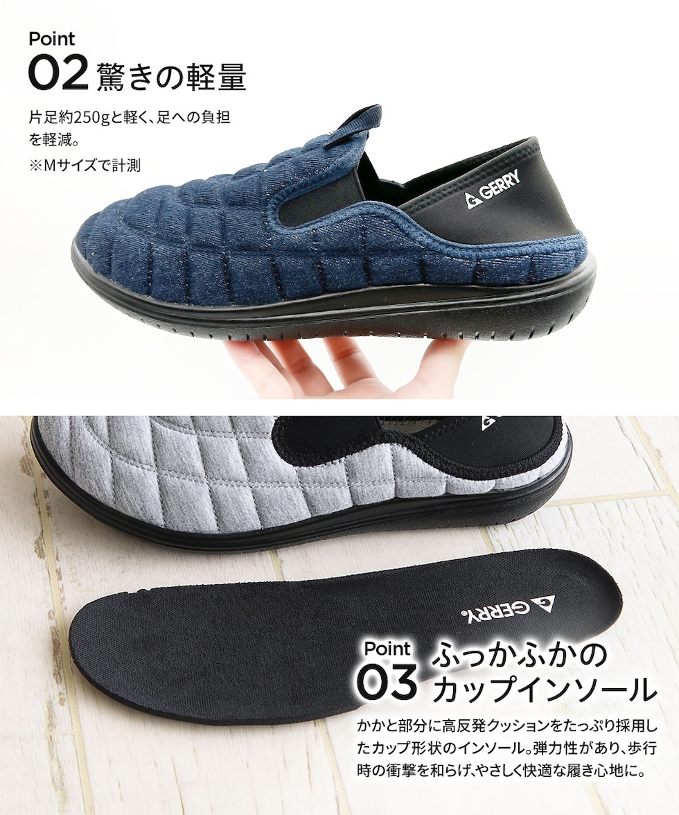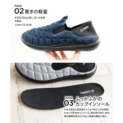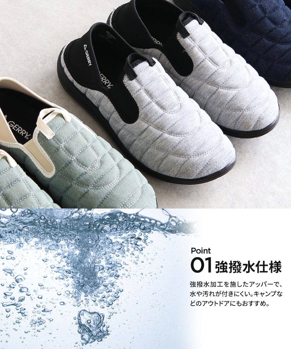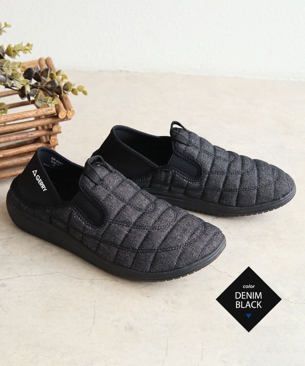 gerry モックシューズ メンズ かかとが踏める 2way 軽量 サボサンダル キルティング 靴 黒 ブラック サックス ジェリー 6592
