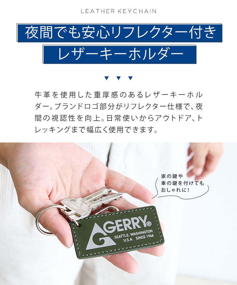 ジェリー キーホルダー 本革 リフレクター キーリング 牛革 カギ 革製品 ブラック 黒 ブラウン 赤 レッド GERRY GR490QG