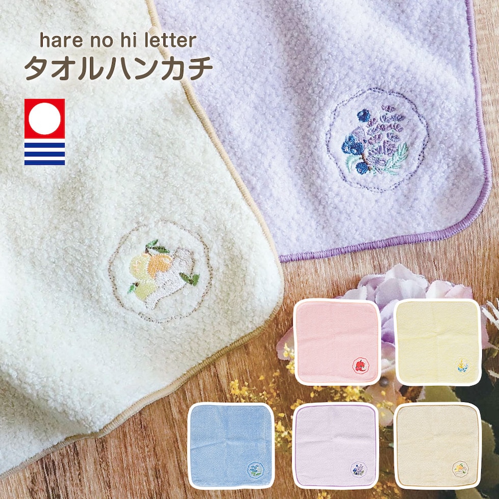 ハンカチ タオル 四角 日本産 今治産 刺繍 通勤 通学 新生活 母の日 誕生日 花 フラワー レッド イエロー ブルー パープル ブラウン