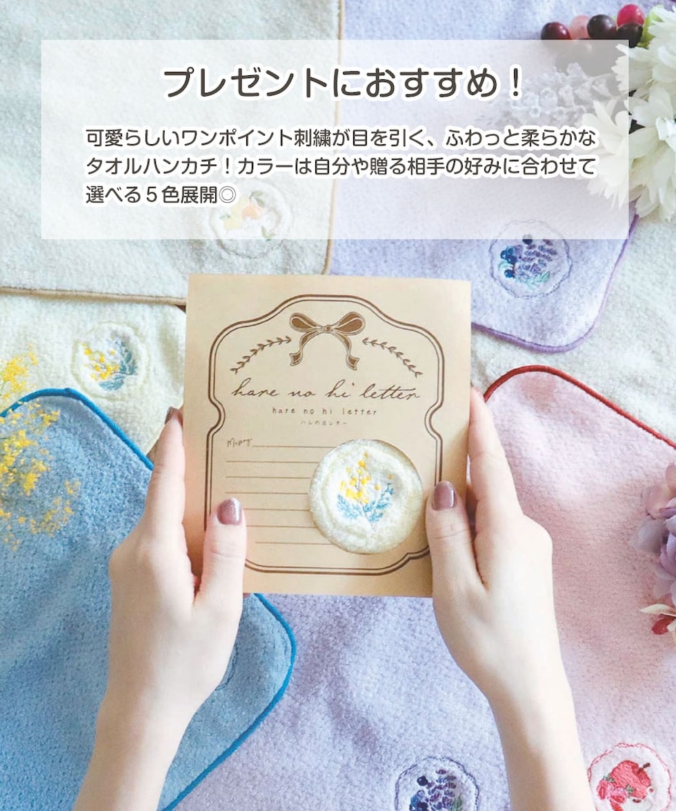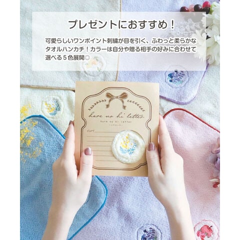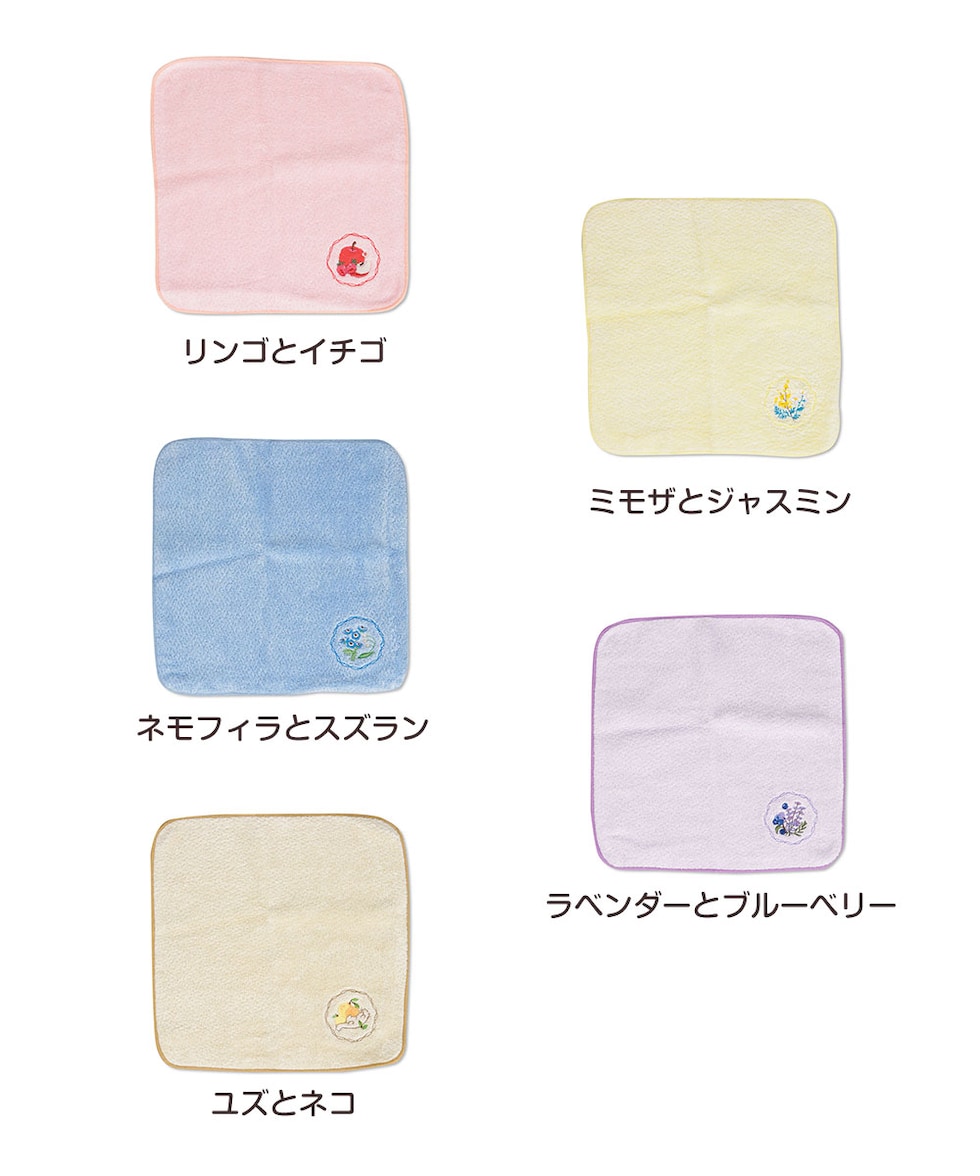 可愛らしいワンポイント刺繍が目を引く、ふわっと柔らかなタオルハンカチ!