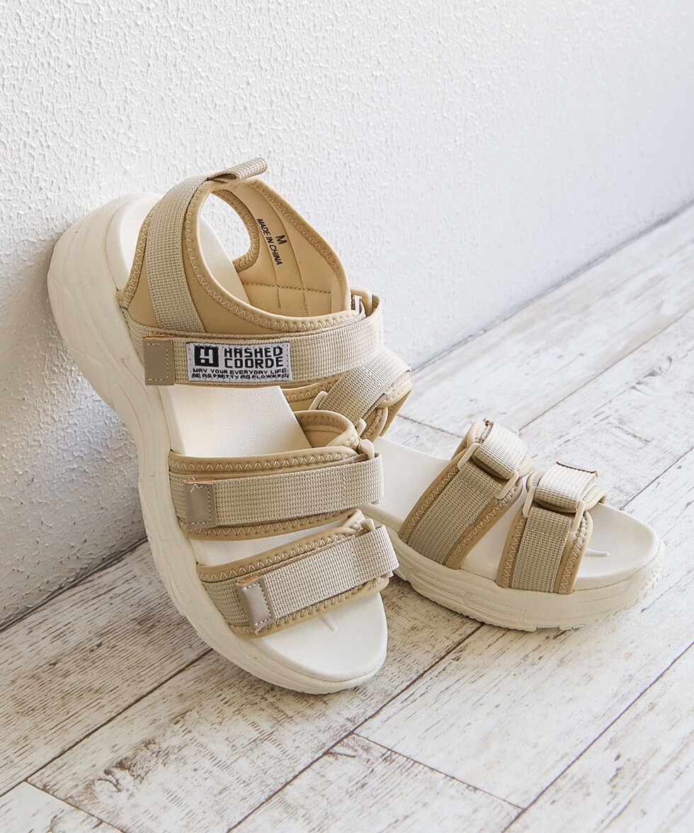 スポーツサンダル レディース 厚底 ストラップ 歩きやすい 脱げにくい シンプル かわいい おしゃれ カジュアル 黒 ブラック ベージュ hc4212