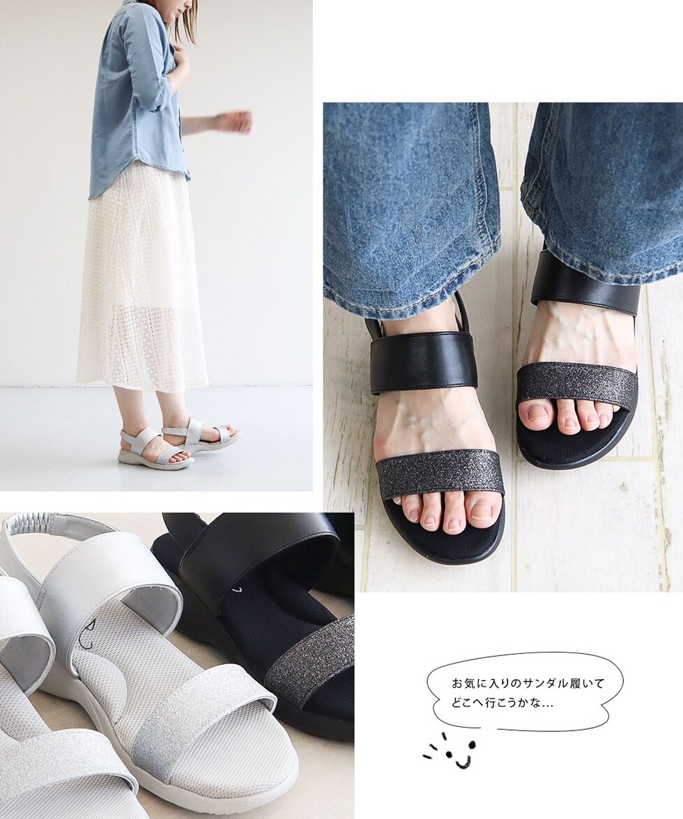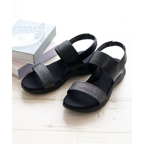 スポーツサンダル レディース 疲れない おしゃれ ストラップ 痛くない 幅広 シンプル カジュアル かわいい 黒 ブラック シルバー hc4515