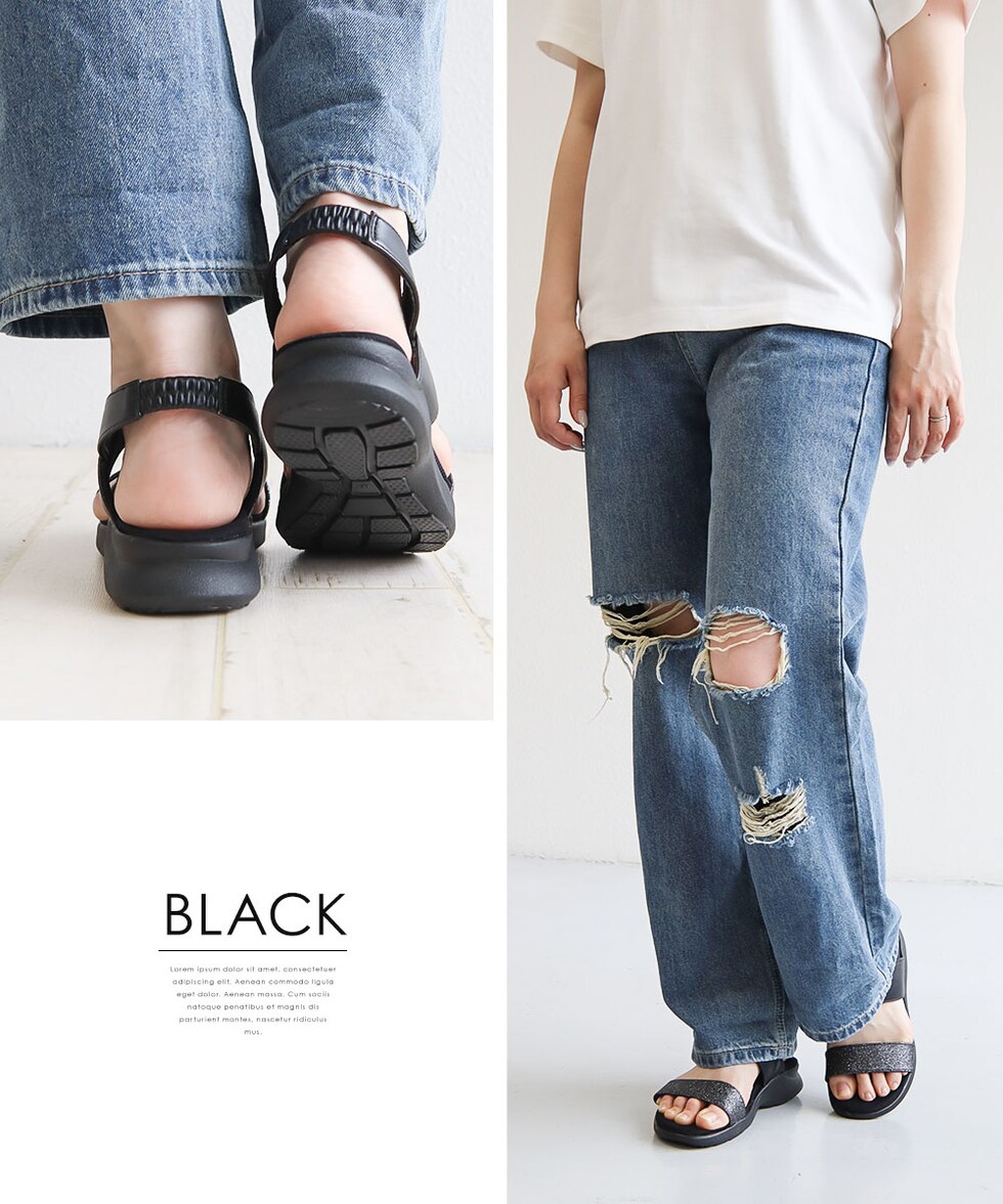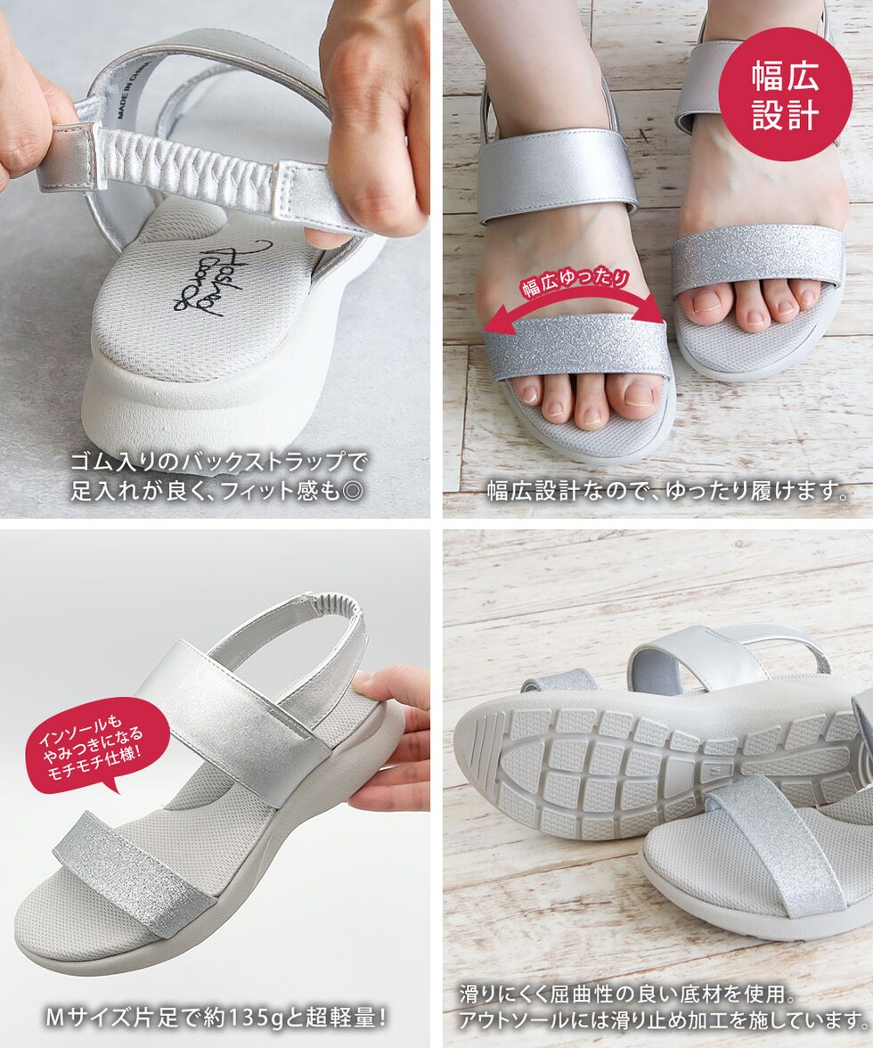 ゴム入りのバックストラップで足入れが良く、フィット感も◎。
