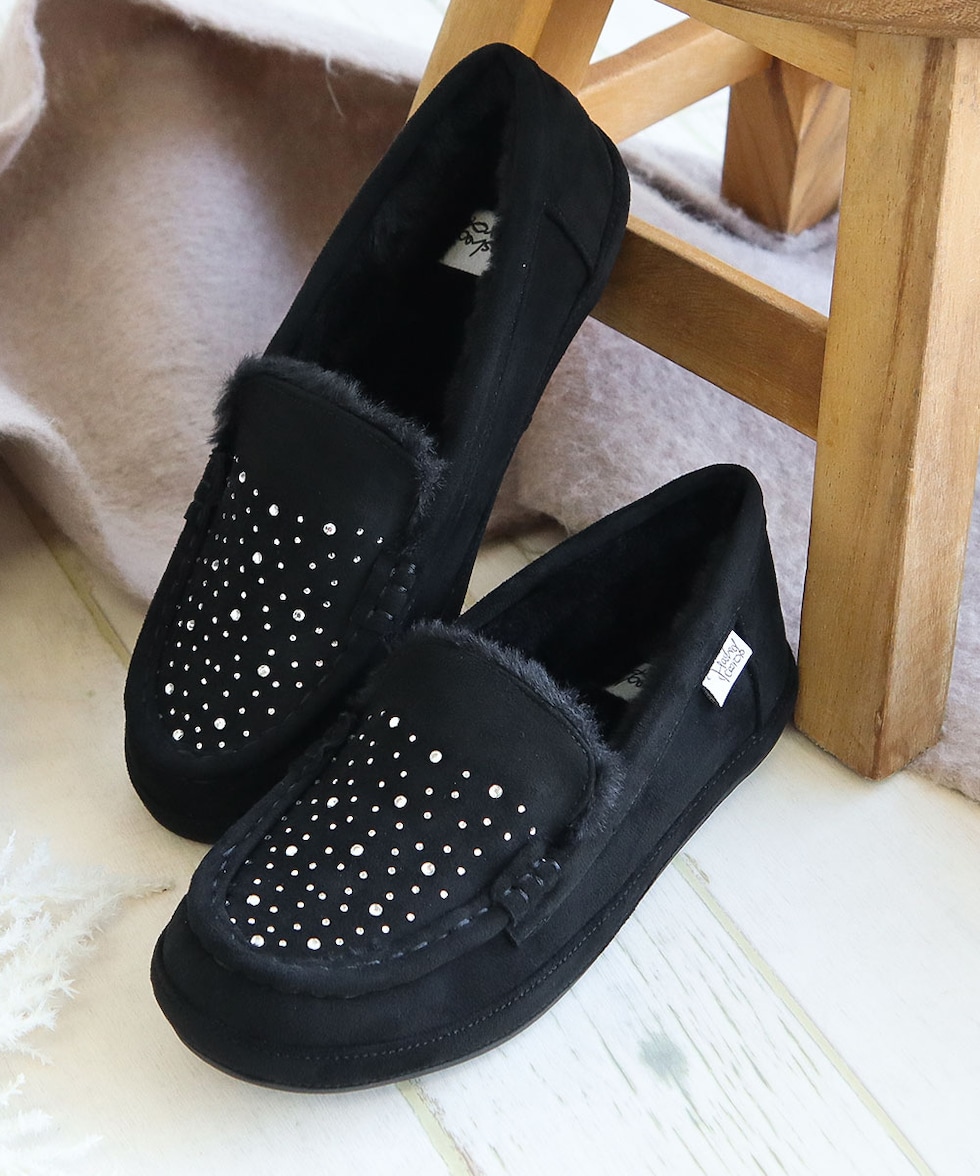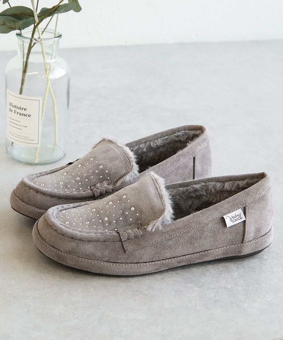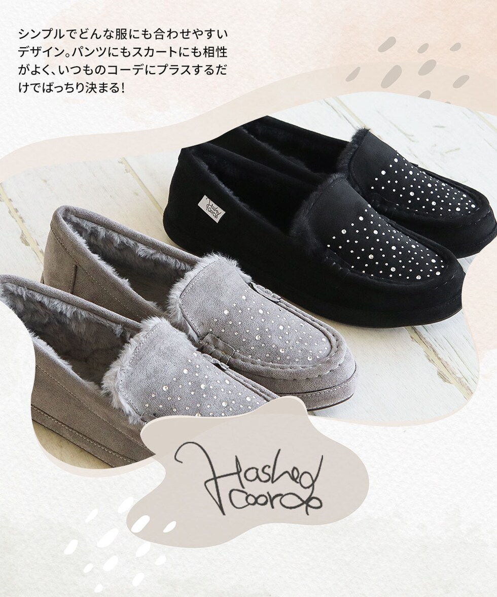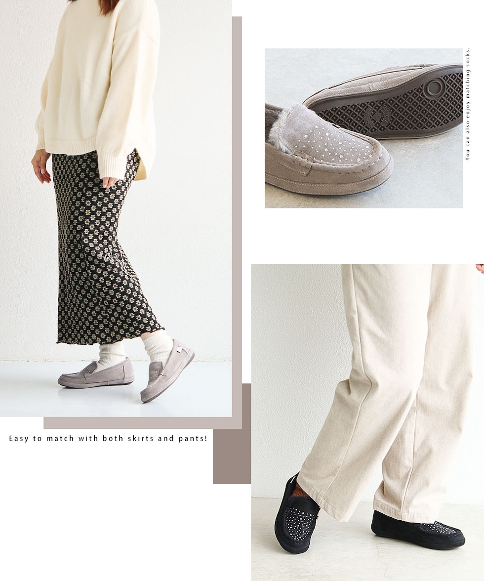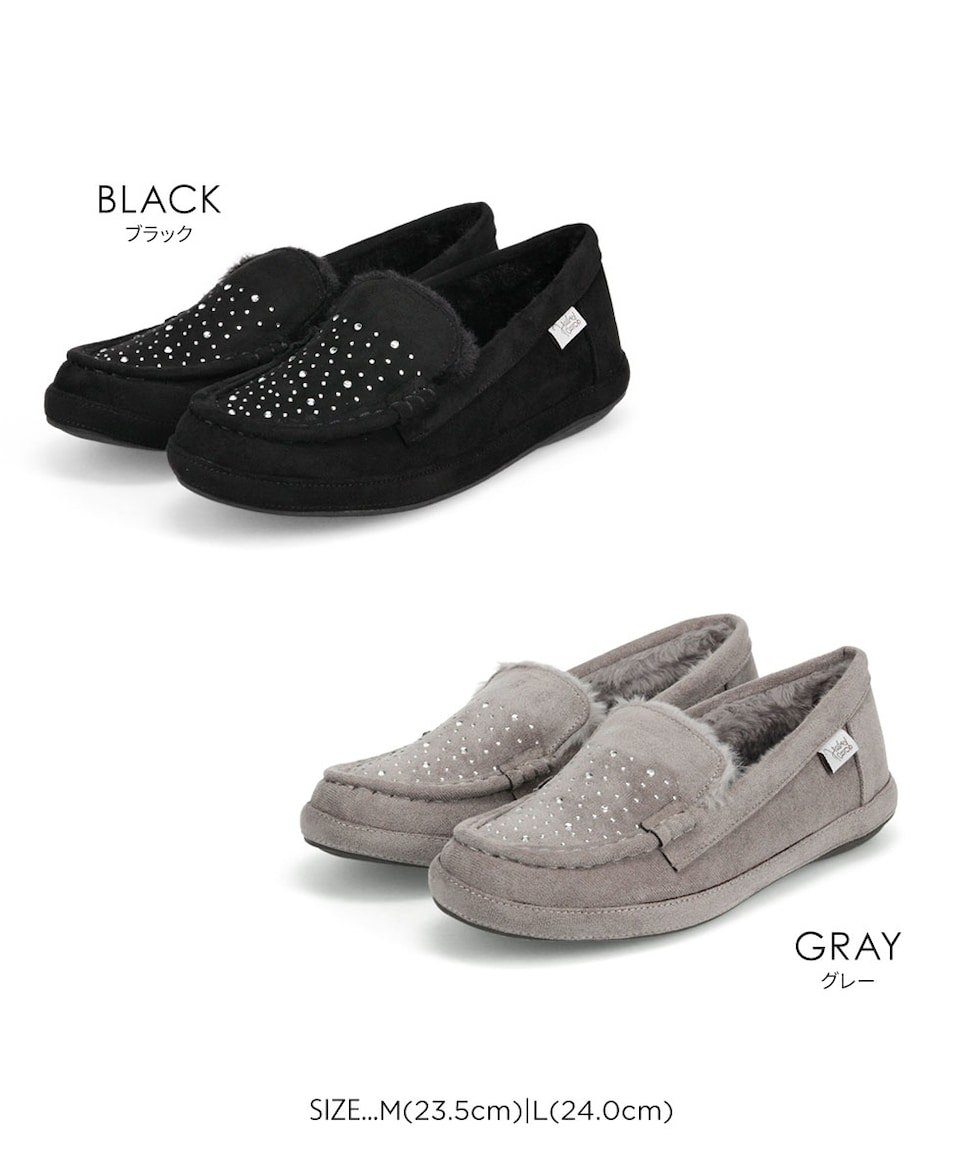 スエード モカシン シューズ レディース ボア ムートン ファー 暖かい 防寒 あったか カジュアル シンプル 靴 ぺたんこ 黒 ブラック 4550