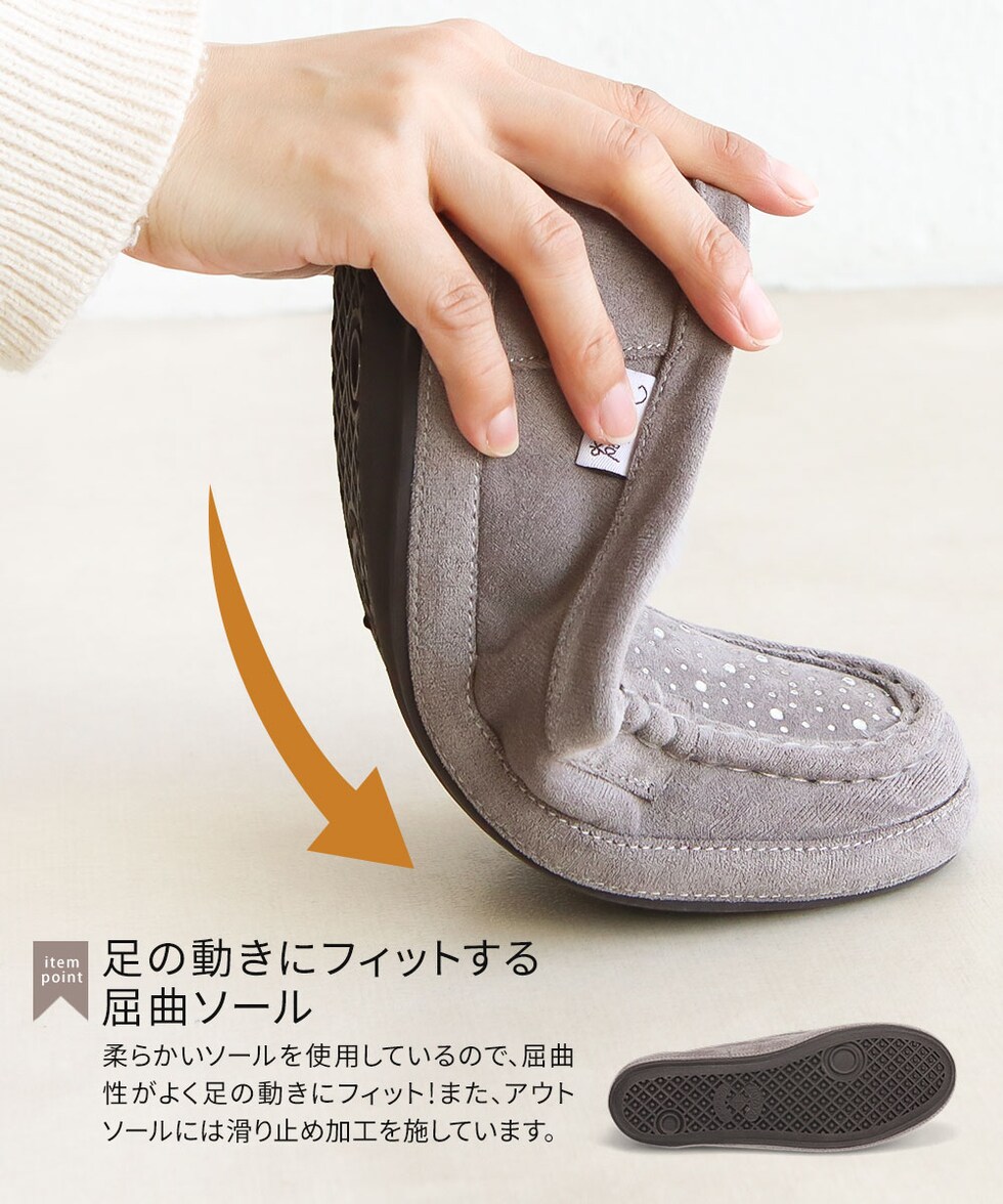 防滑加工を施したアウトソールは屈曲性も抜群で足運びラクラク。