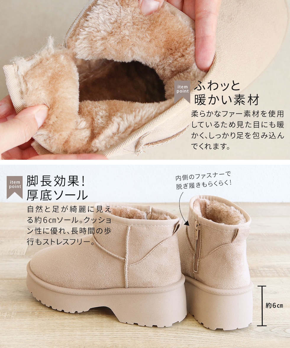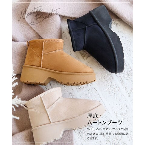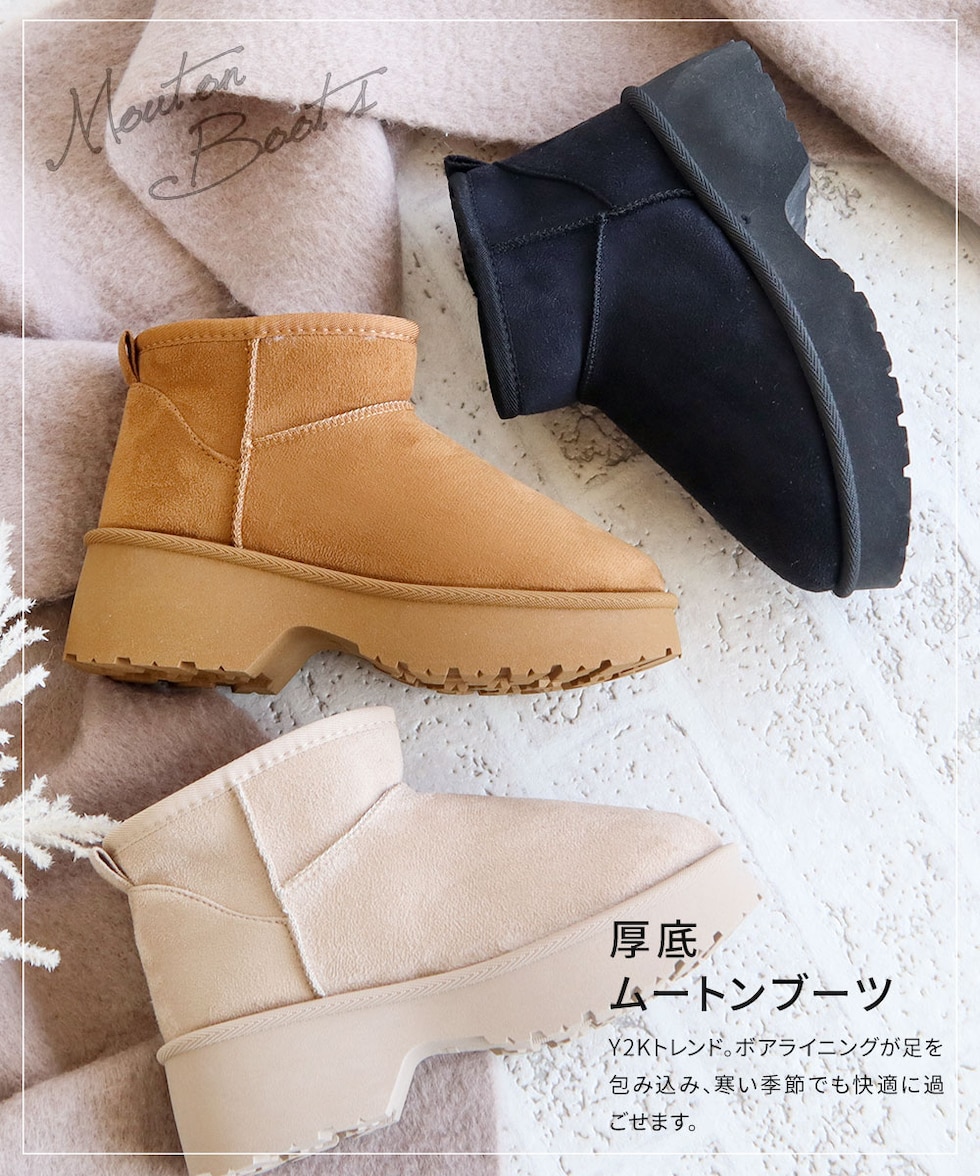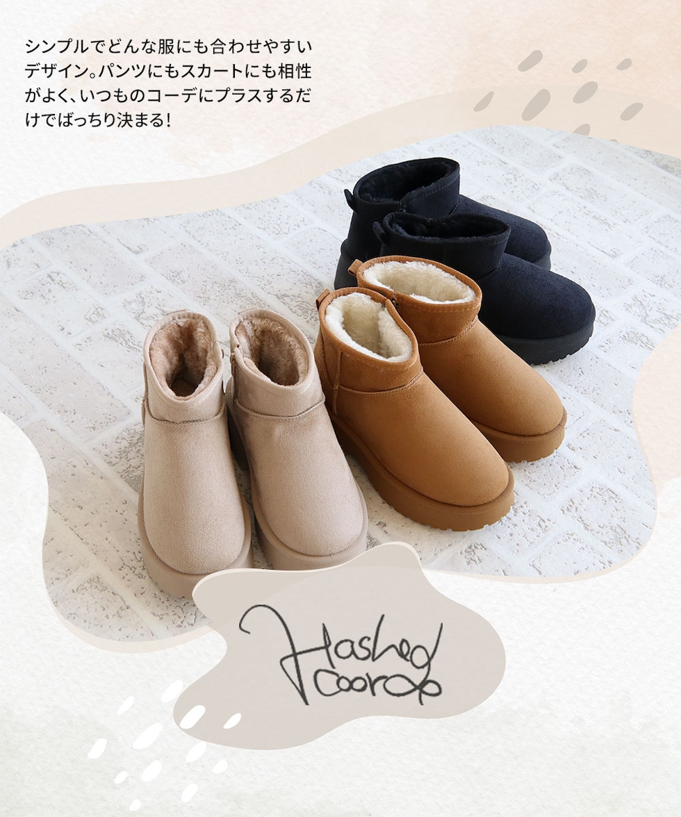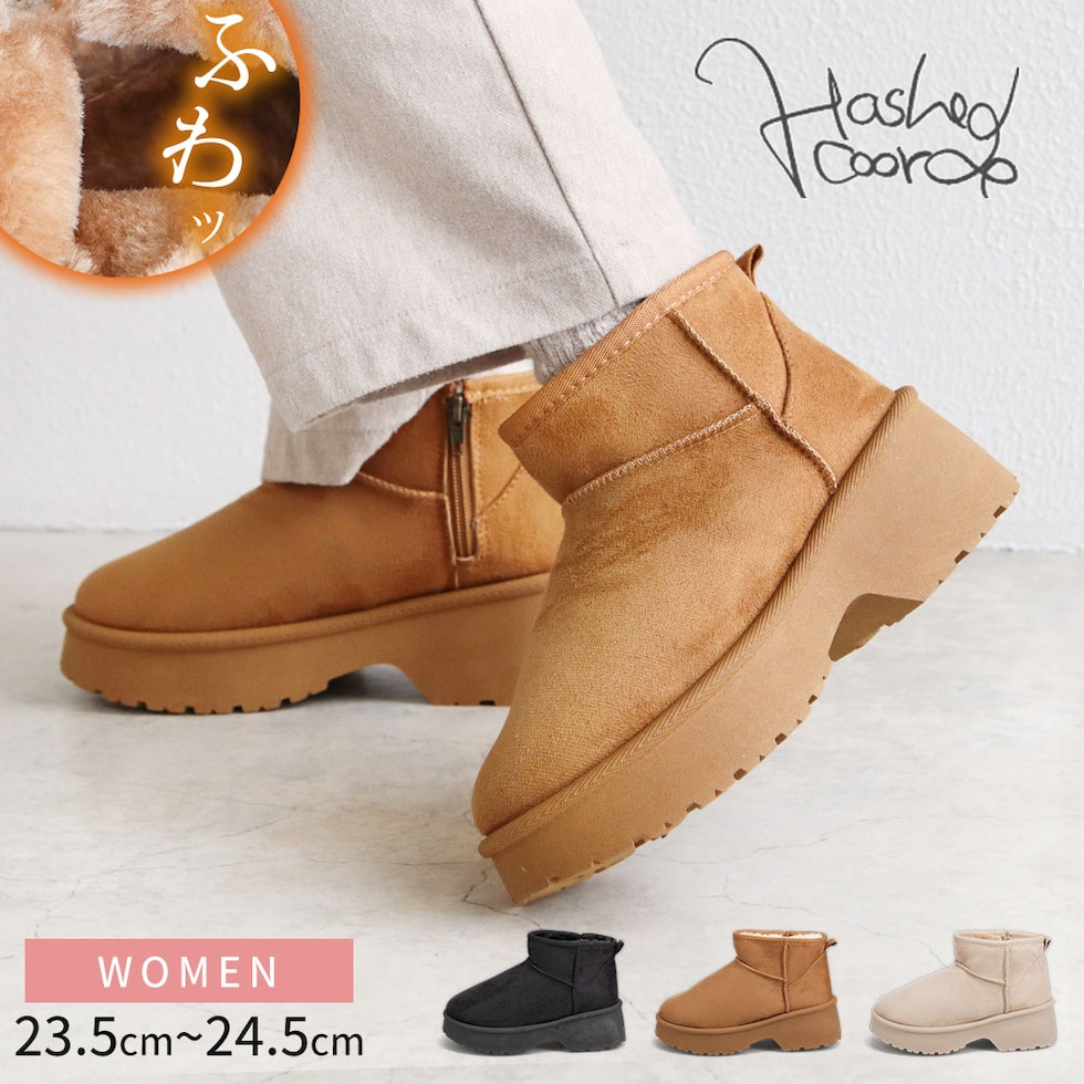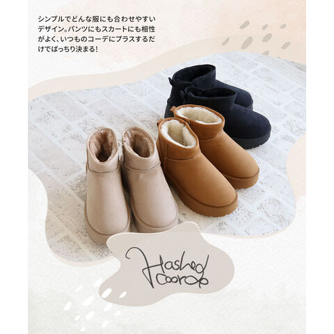 ハッシュドコーデ ムートン ブーツ レディース かわいい 厚底 歩きやすい 軽量 靴 ボア 冬 防寒 ボア もこもこ あったか カジュアル シューズ ファー hc4583