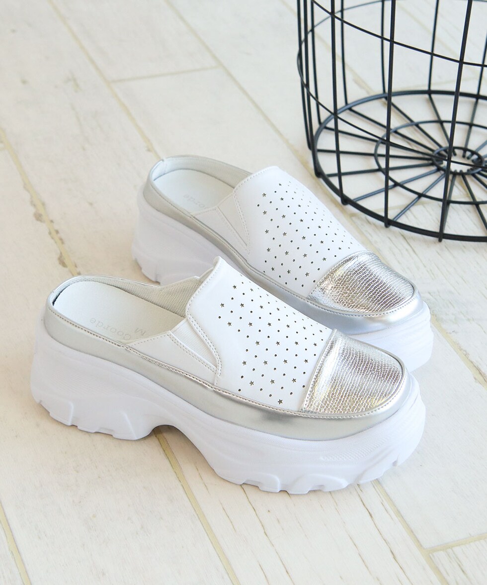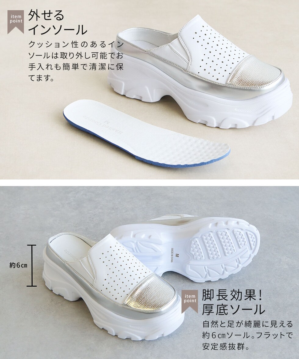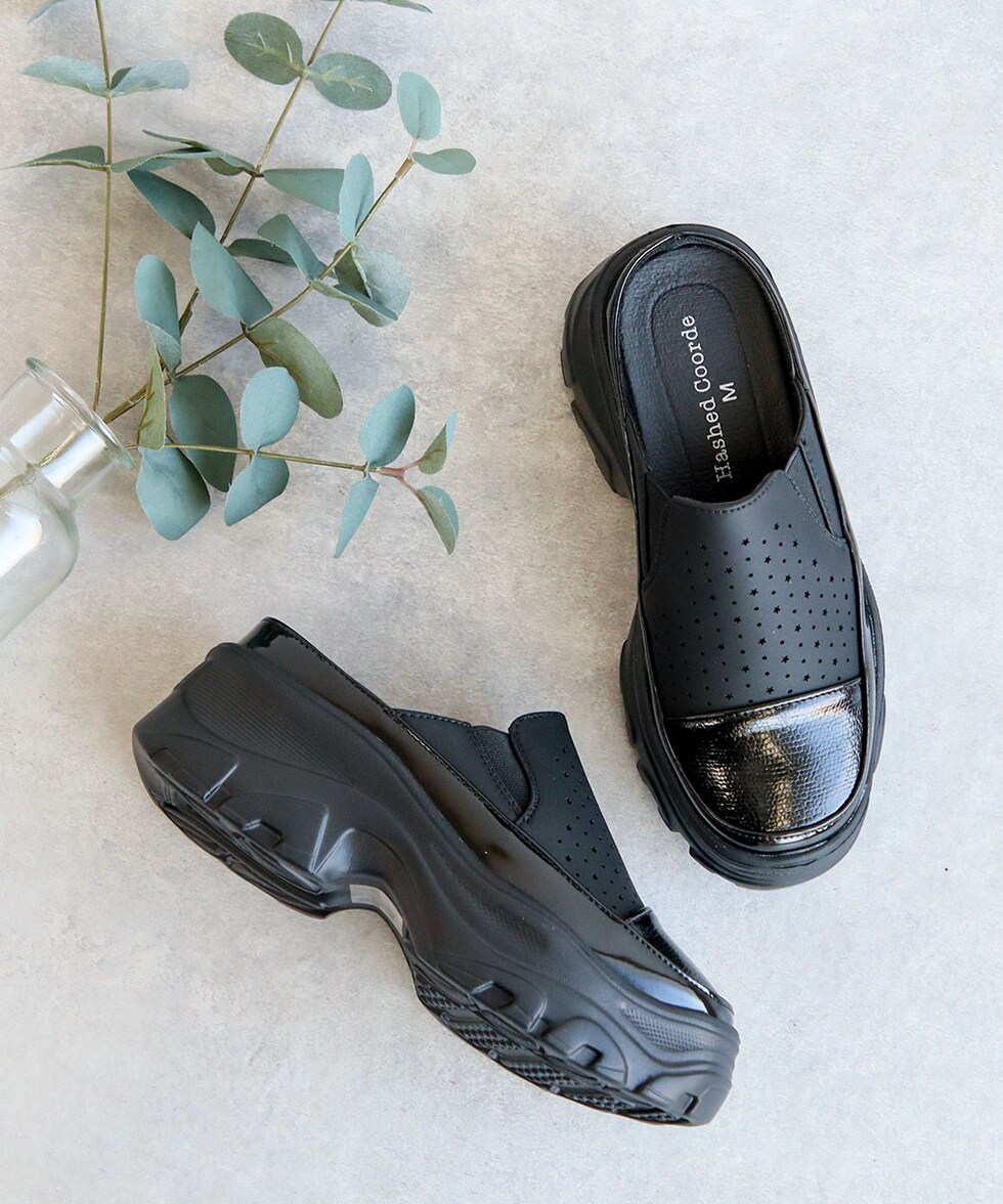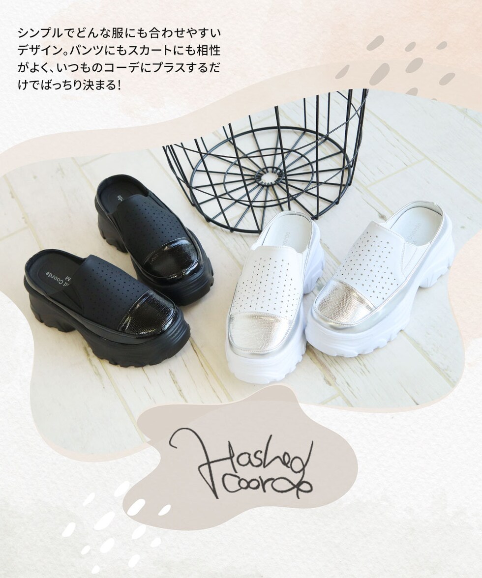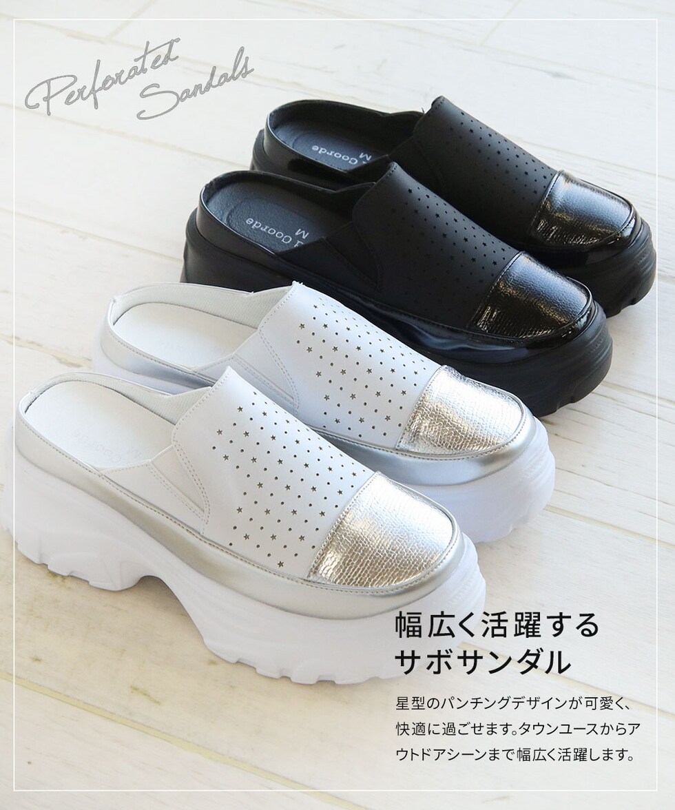 ハッシュドコーデ サボ サンダル レディース 厚底 星型 パンチング クロッグ かかとなし スリッパ つっかけ カジュアル 軽量 靴 シューズ 散歩 ジュニア hc4587