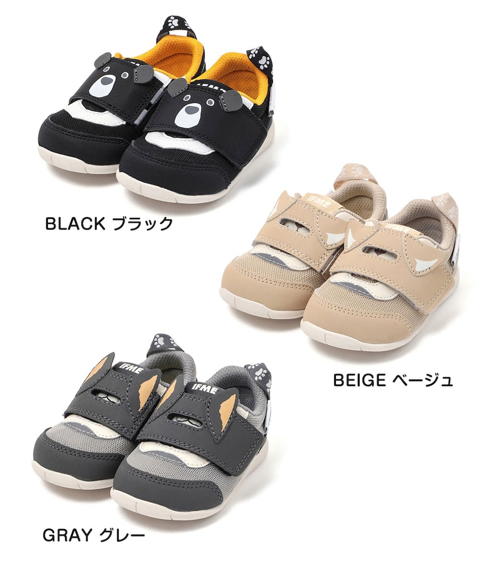 イフミー 子供 靴 スニーカー 男の子 女の子 マジックテープ ベルクロ 赤ちゃん ファースト ベビー シューズ どうぶつ 柴犬 クマ PARK アニマル 20-5801 IFME