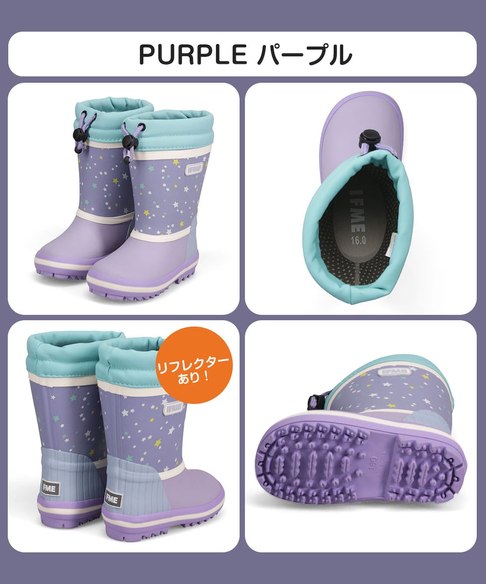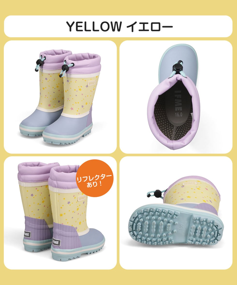 イフミー 子供靴 キッズ 長靴 レイン ラバーブーツ 通学 通園 幼稚園 保育園 雨 雪 かわいい イエロー パープル 50-4883 IFME