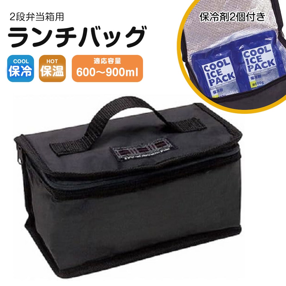 お弁当 バッグ 2段 ランチ ケース 保冷 剤 袋 普段使い 小物入れ サブ 大人 かばん 男性 女性 子供 シンプル KB52