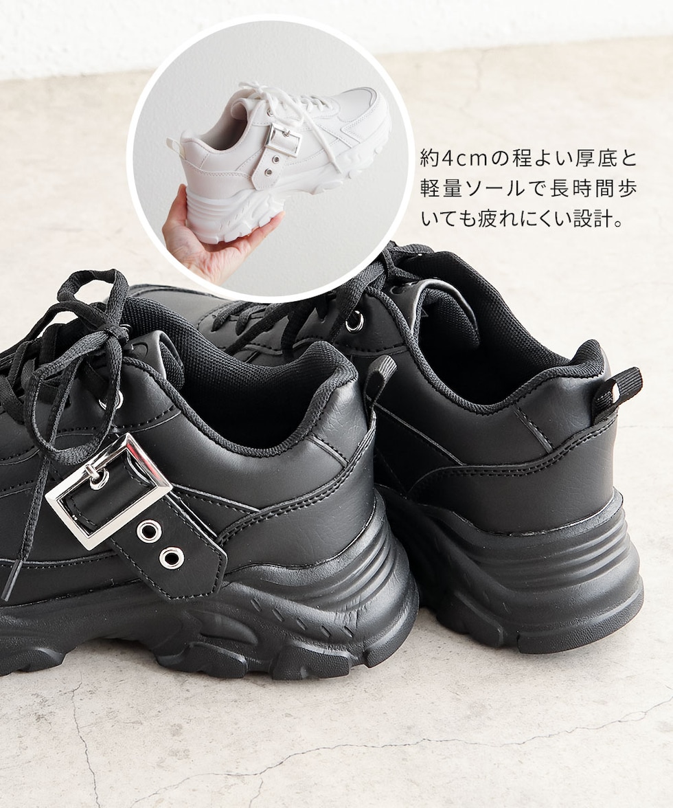約4cmの程よい厚底と軽量ソールで長時間歩いても疲れにくい設計。