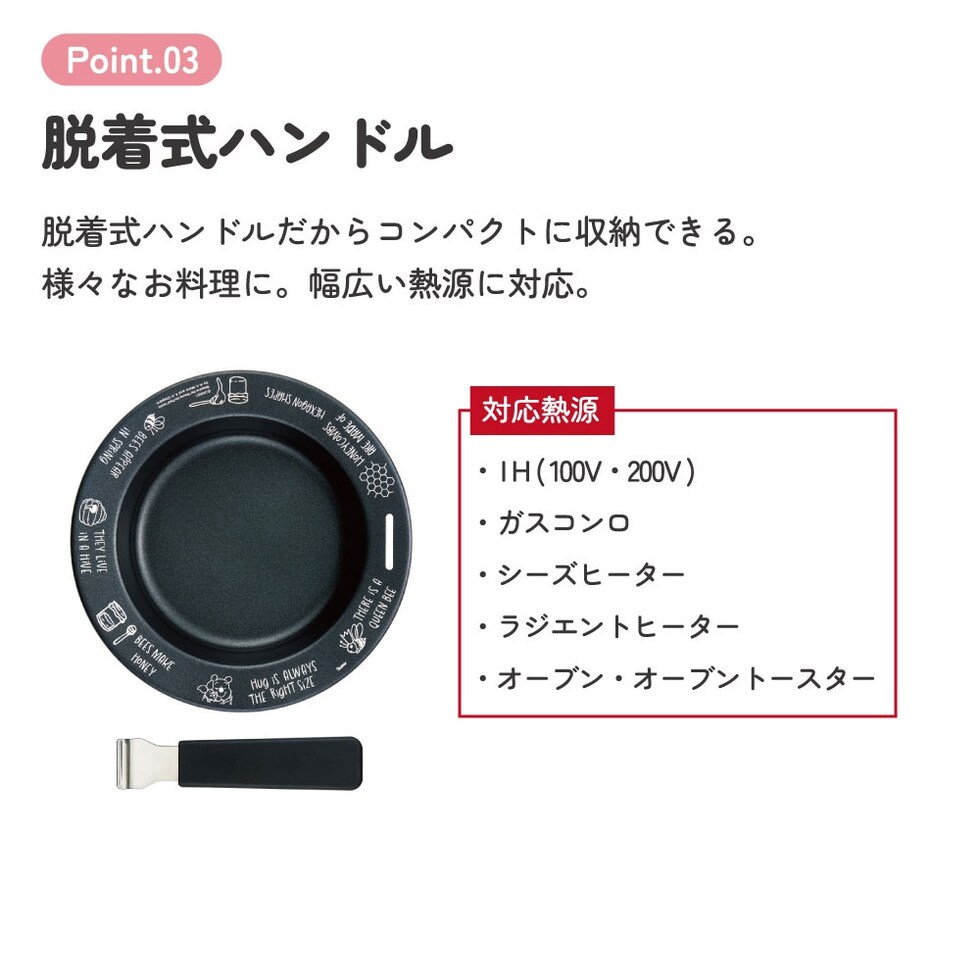 ハンドル付き 鉄皿 22cm フライパン IH対応 直火 オーブン ガス 鉄板 耐熱プレート 取っ手が取れる キッチン 調理器具 プーさん KIPH1