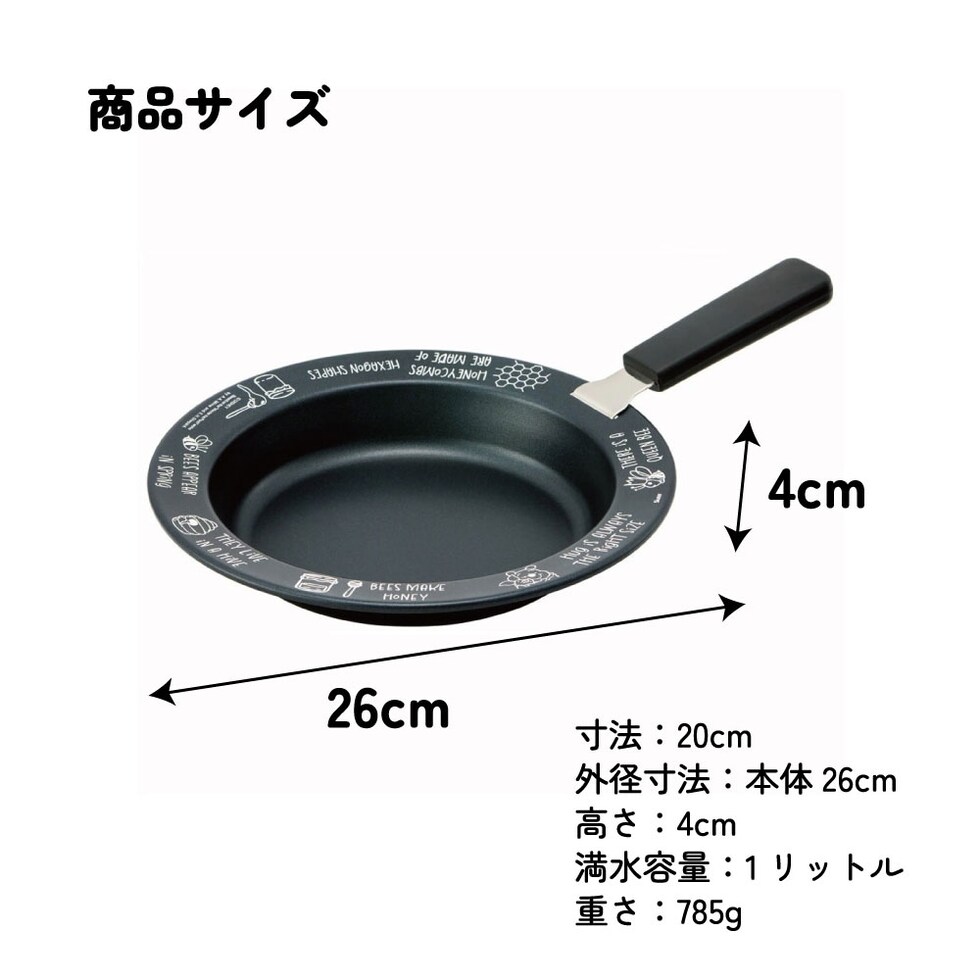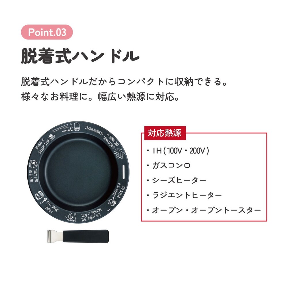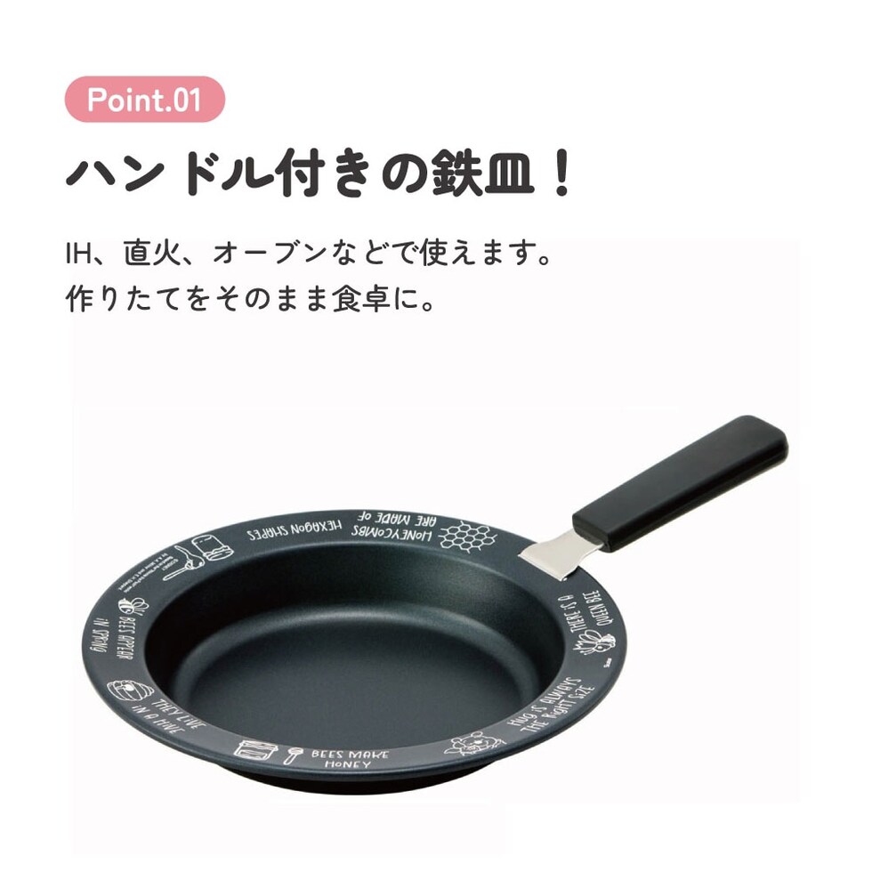 ハンドル付き 鉄皿 26cm フライパン IH対応 直火 オーブン ガス 鉄板 耐熱プレート 取っ手が取れる キッチン 調理器具 プーさん KIPH2