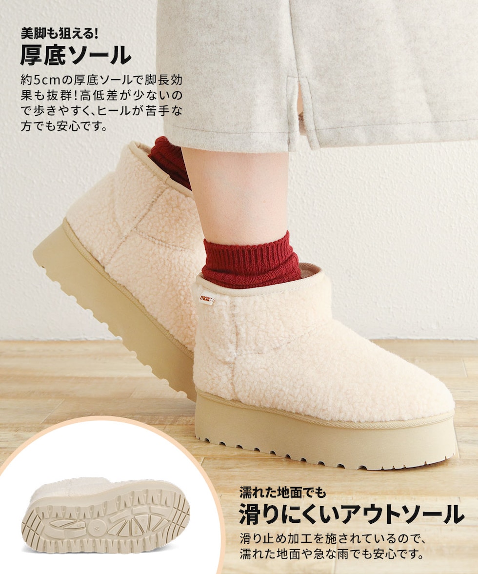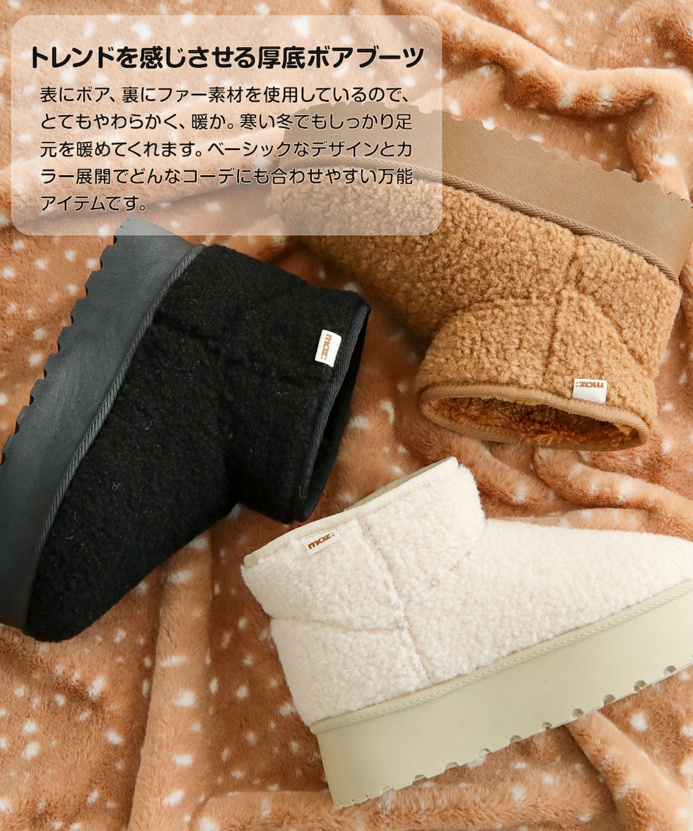 モズ ムートン ブーツ レディース かわいい 厚底 歩きやすい 軽量 おしゃれ 靴 あったか 冬 ボア ムートン カジュアル もこもこ シューズ 防寒 ファー 1982 moz