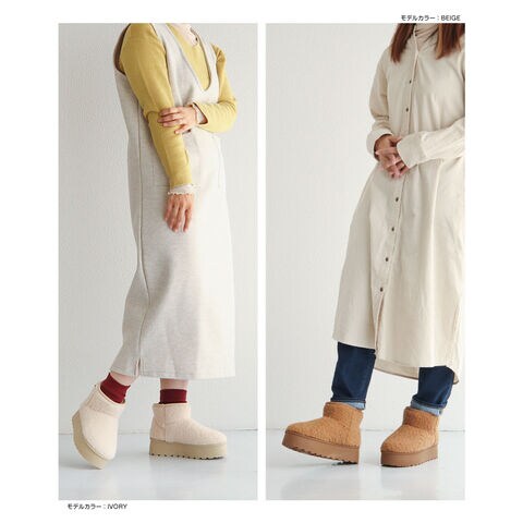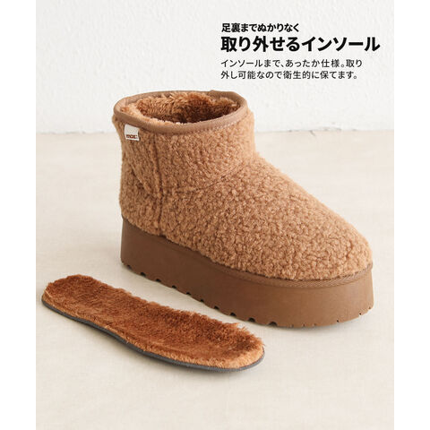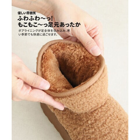 表にボア、裏にファー素材を使用しているので、とてもやわらかく、暖か。 寒い冬でもしっかり足元を暖めてくれます。