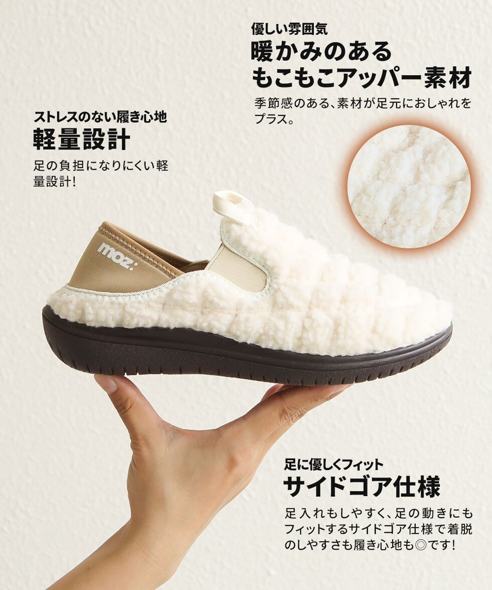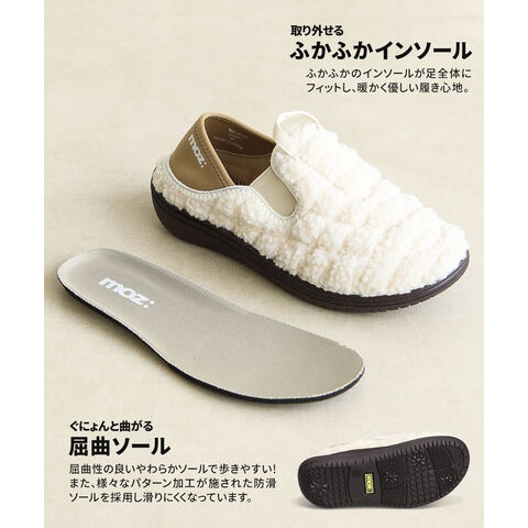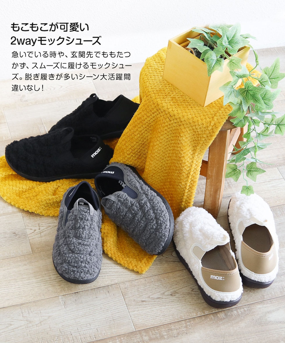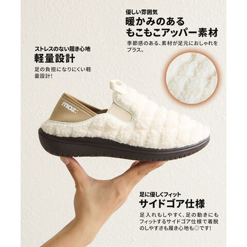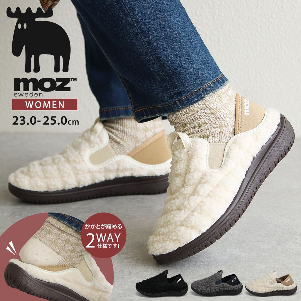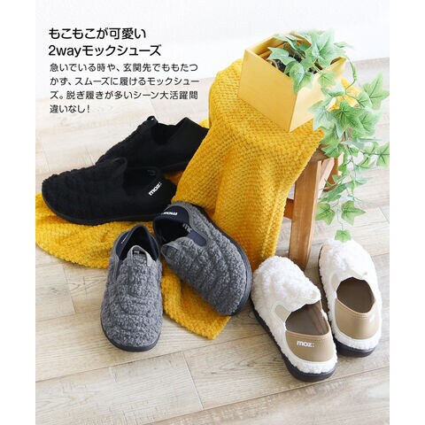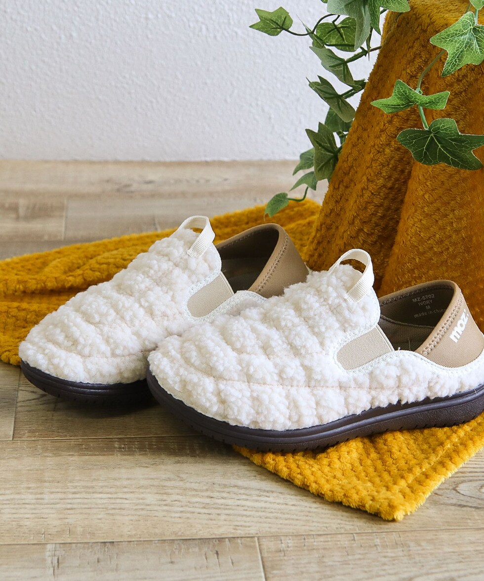 モズ キルティング モック シューズ レディース かかとが踏める 靴 黒 ブラック グレー カジュアル あったか アウトドア moz 5702