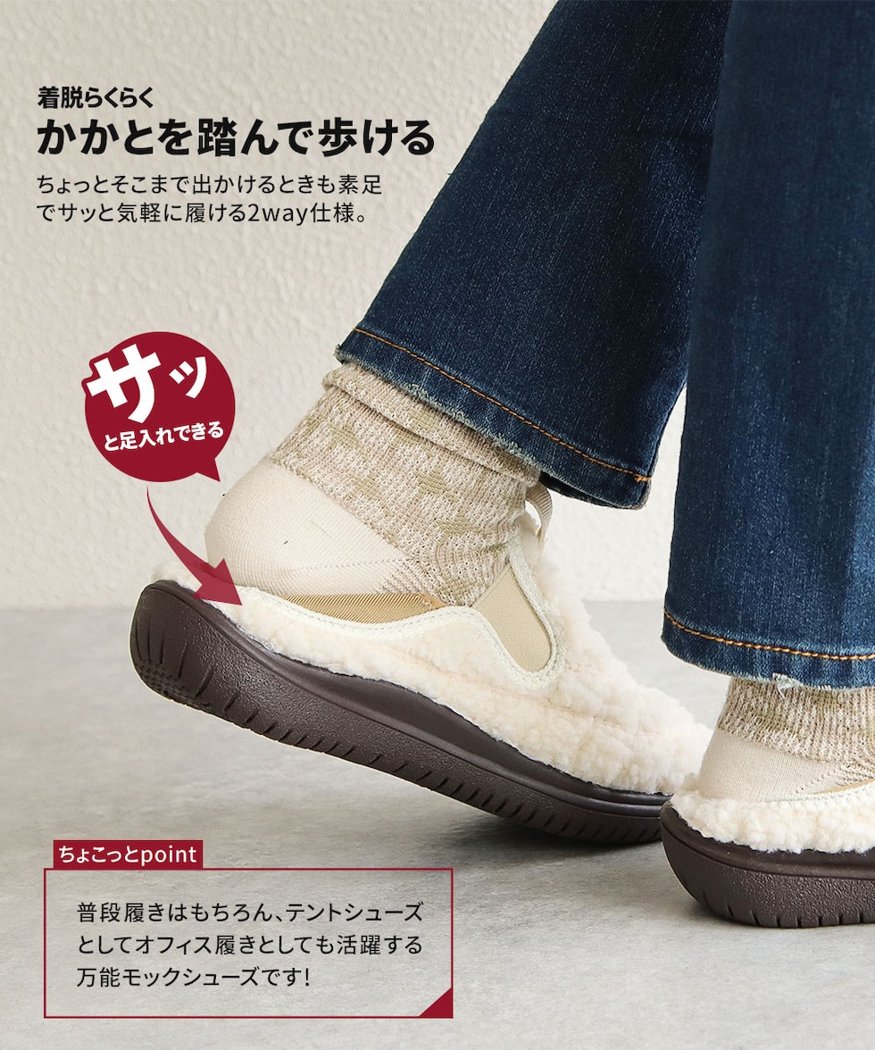 脱ぎ履きが便利なので、ちょっとした外出からテントシューズとしても活躍。