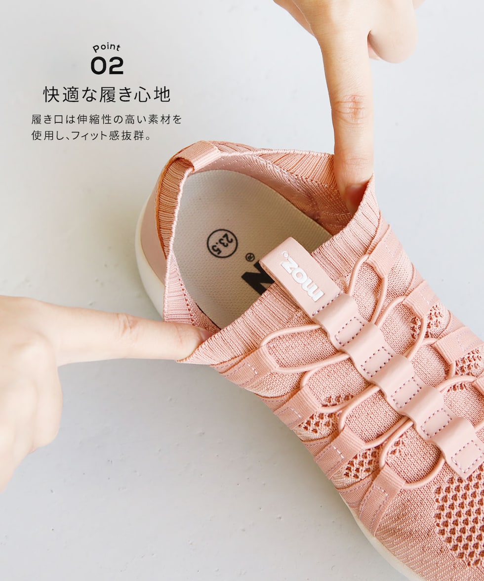 モズ スリッポン レディース 軽量 靴 メッシュ 軽い シンプル おしゃれ ジュニア ブラック グレー ネイビー ワイン ピンク moz 61801