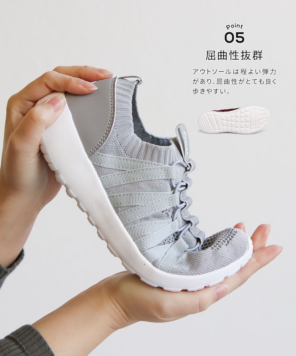 ゴムタイプの紐は結ぶ必要がなく、スポンと履けてとっても楽。
