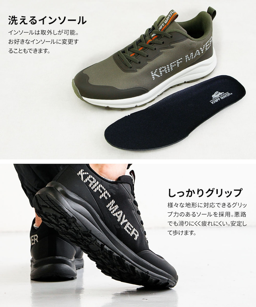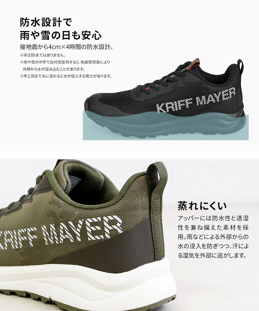 クリフメイヤー スニーカー メンズ ローカット 防水 蒸れにくい アウトドア 靴 ハイキング 黒 ブラック カーキ KRIFF MAYER 9828のレビュー