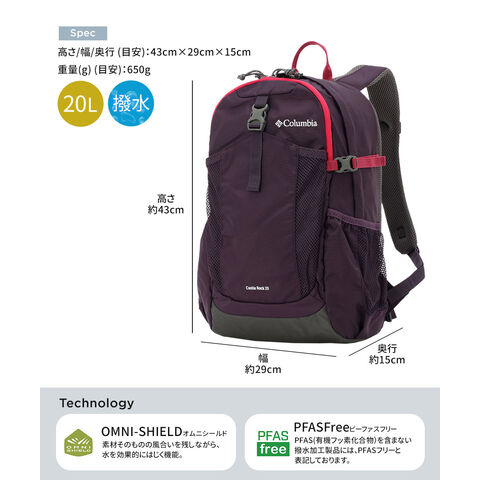 コロンビア リュックサック CASTLE ROCK 20L BACKPACK 2 撥水 レインカバー 登山 トレッキング リュック Columbia