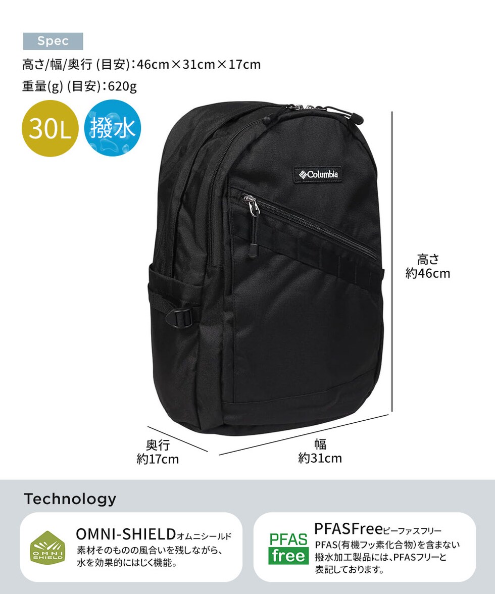 コロンビア リュックサック バックパック 30L メンズ レディース 撥水 PC収納 ビジネス仕様 通勤 通学 かばん 大容量 ALWAYS BY SIDE PU8683 Columbia