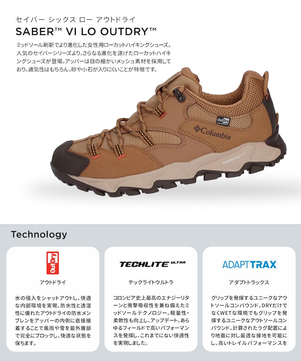 コロンビア ハイキングシューズ レディース ローカット 防水 柔軟性 通気性 防滑 軽い 滑りにくい キャンプ 靴 アウトドア SABER VI LO OUTDRY YL5037 Columbia