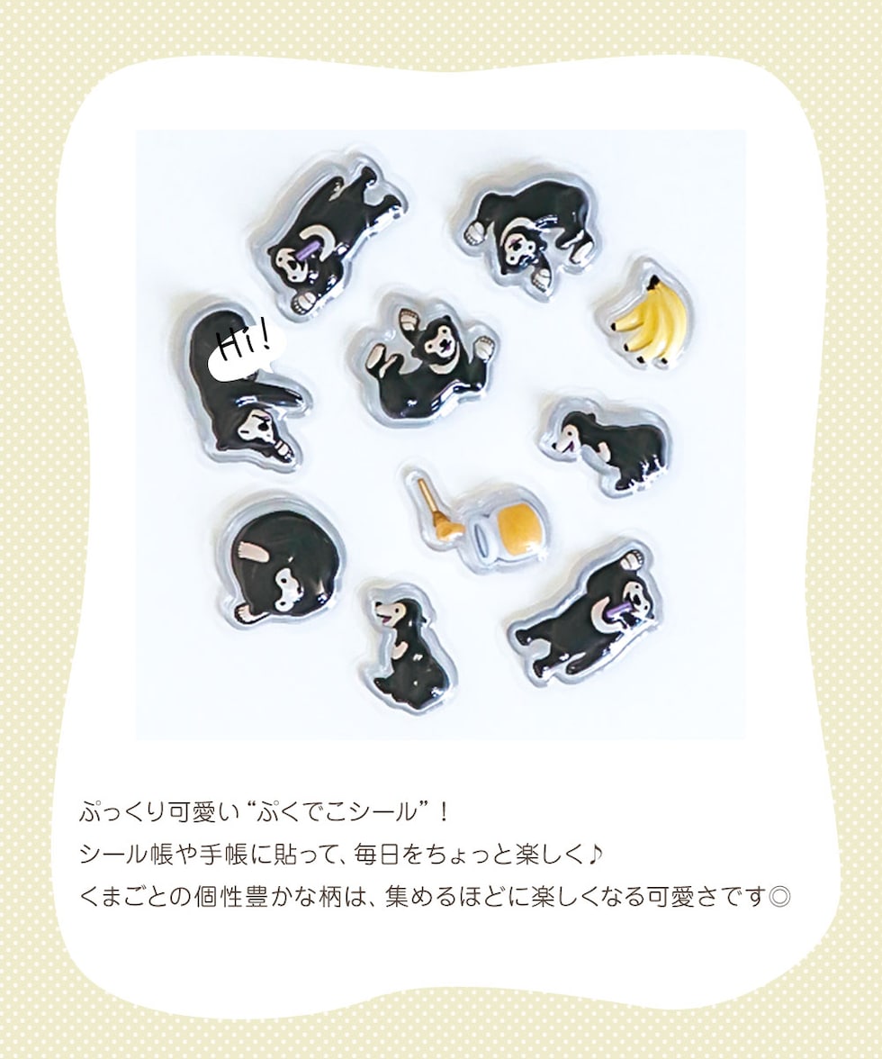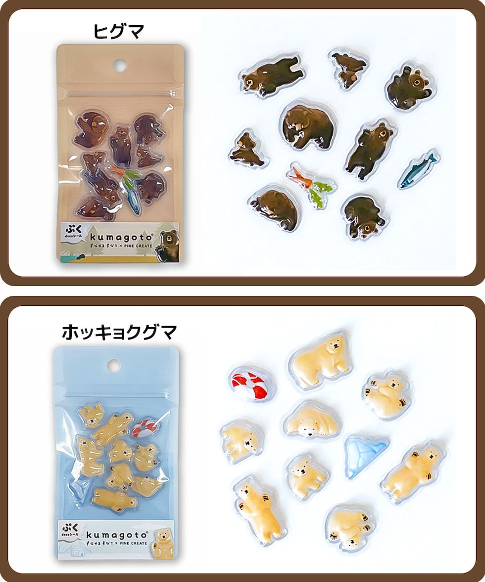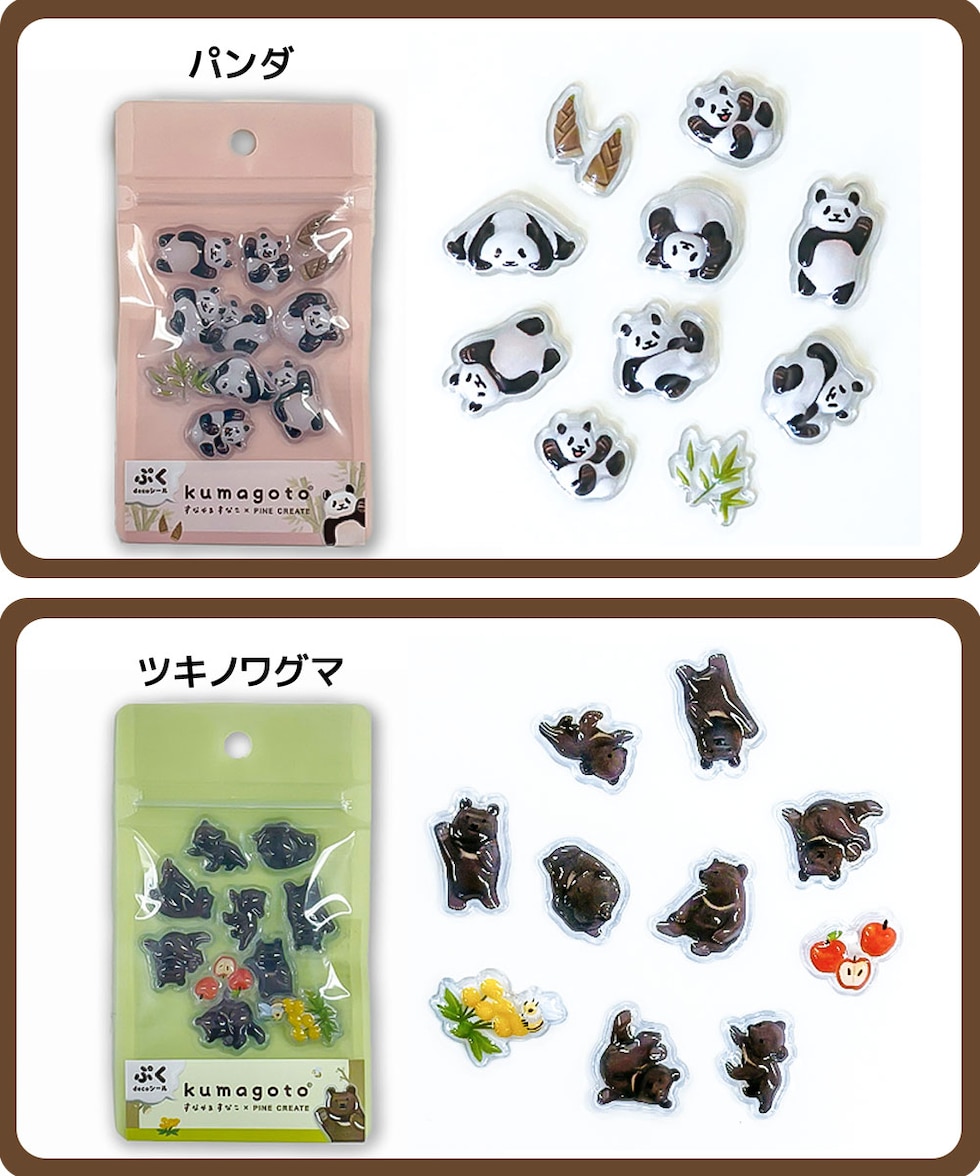 kumagoto くまごと ぷくdecoシール ぷっくり 立体 デコ ヒグマ ホッキョクグマ パンダ ツキノワグマ マレーグマ すなやますなこ コラボ シール帳 ノート 雑貨