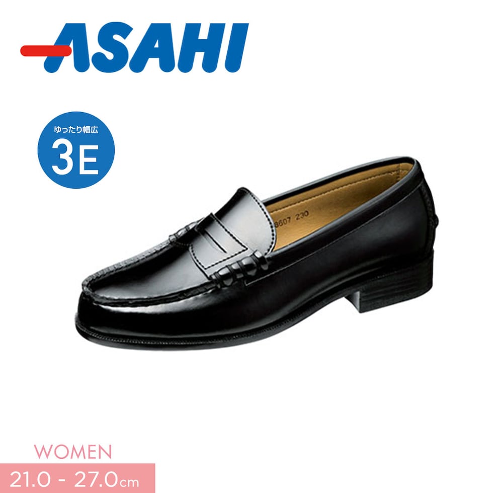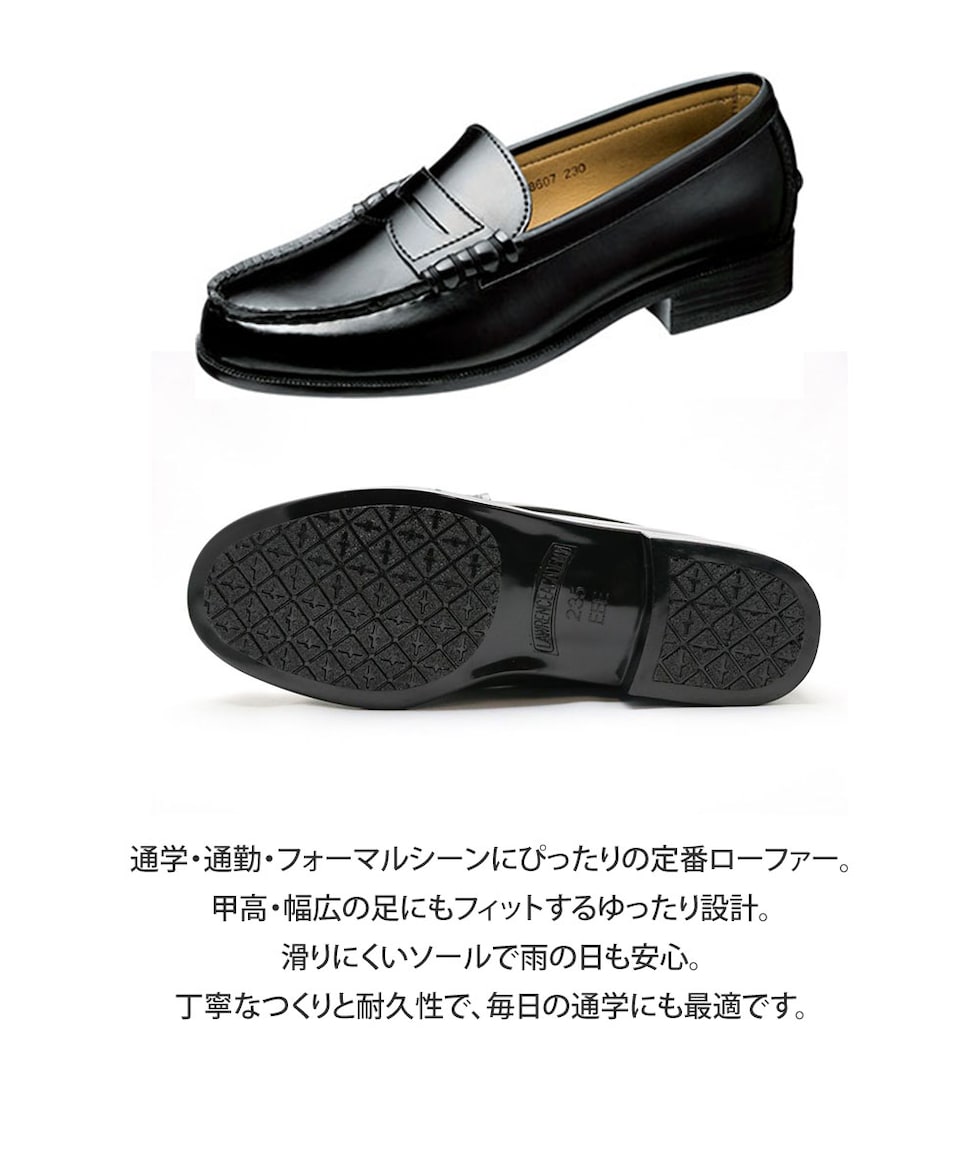 コインローファー 通学用 スクールシューズ ビジネス 通勤 フォーマル 女性用 女子 学生靴 レディース 軽量 幅広 3E 黒 ブラック LA8607