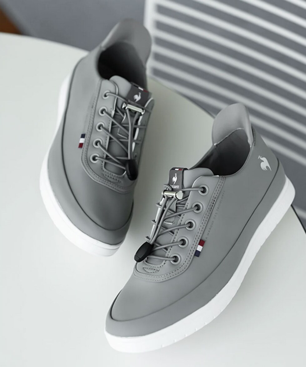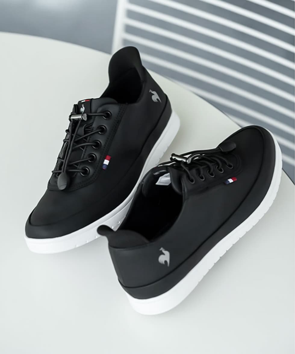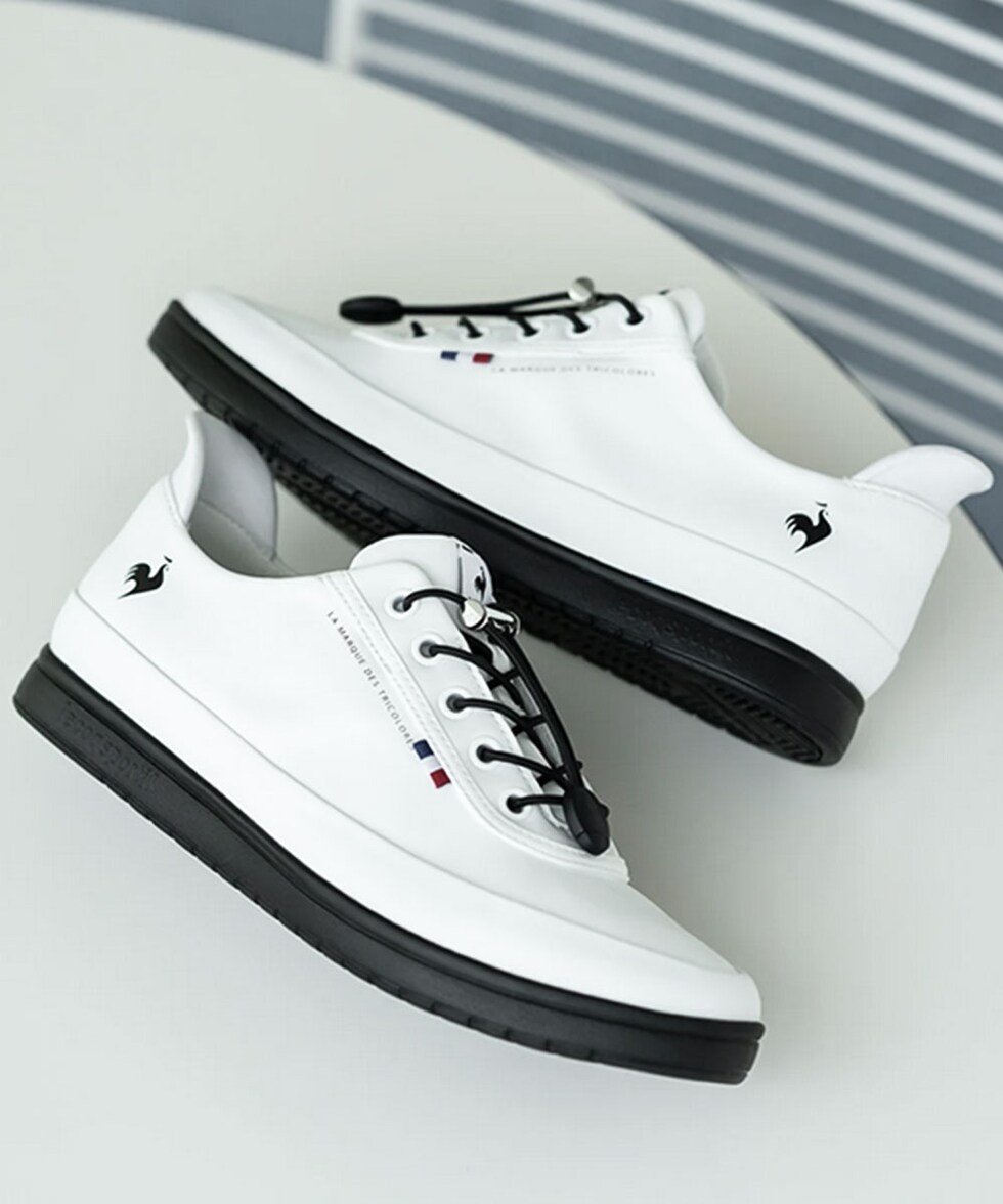 シンプルなデザインながら、サイドにはフランスブランドらしいトリコロールのテープや、ブランドのロゴがアクセントになっています。